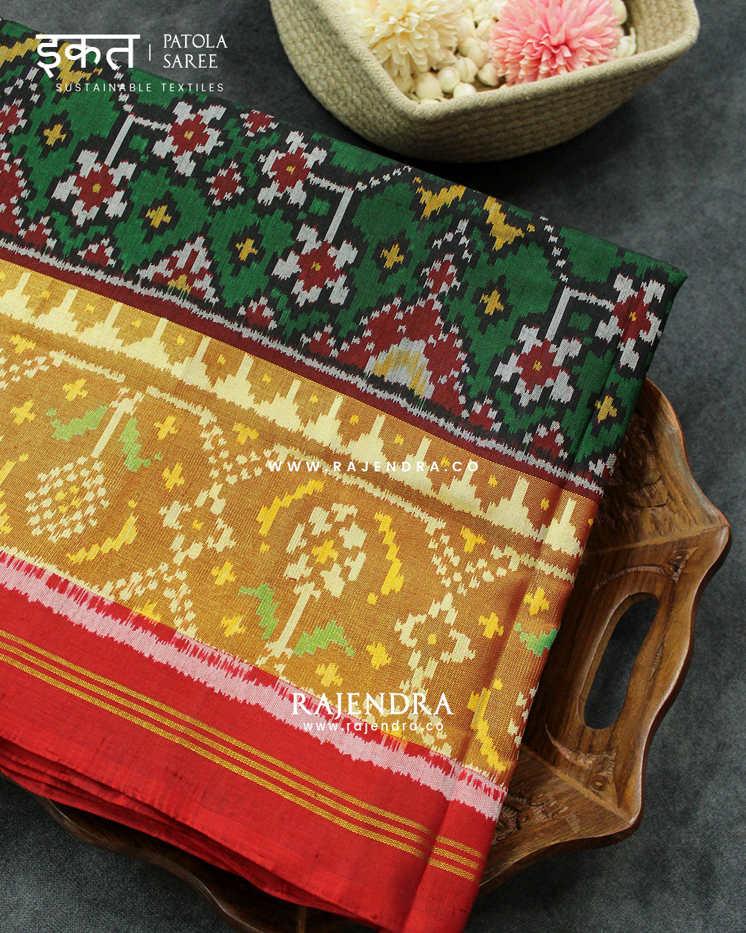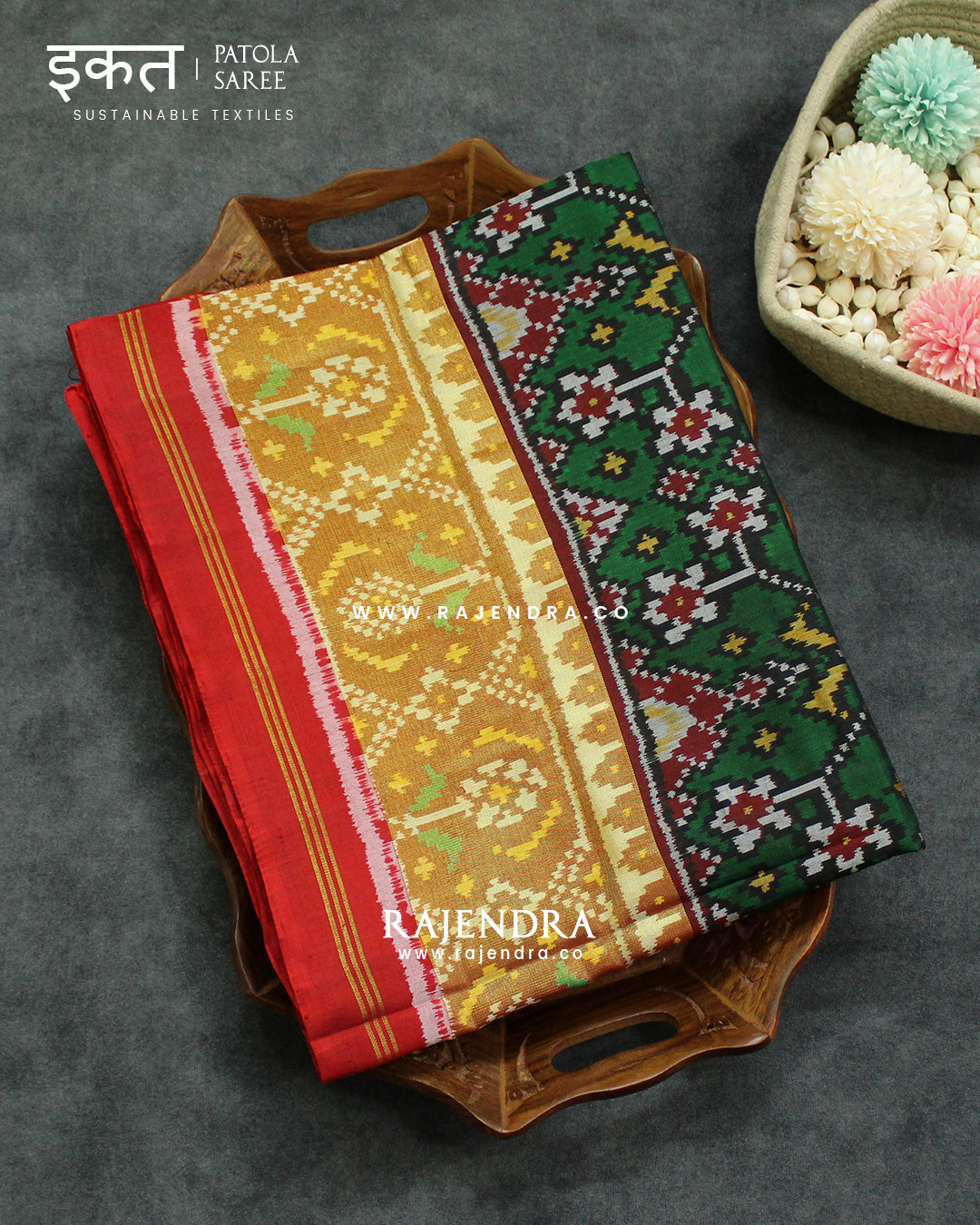 Traditional Navratna Design Red and green Single Ikat Rajkot Patola Saree