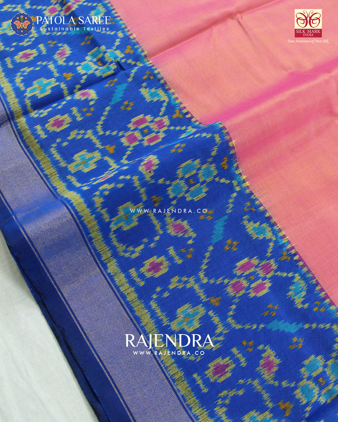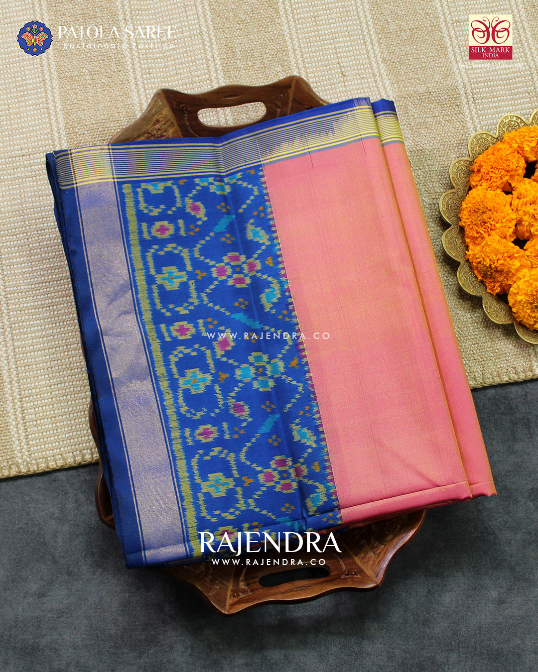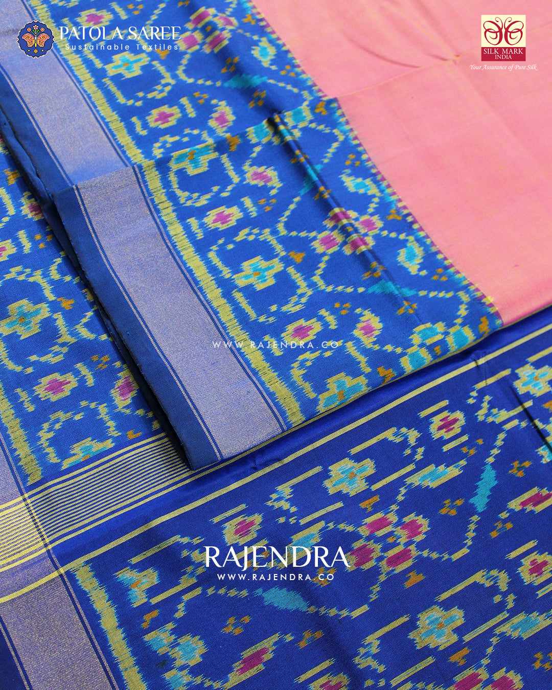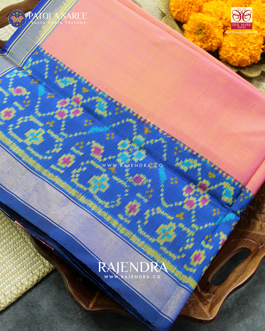 Traditional Gala Border Blue and Peach Single Ikat Rajkot Patola Saree