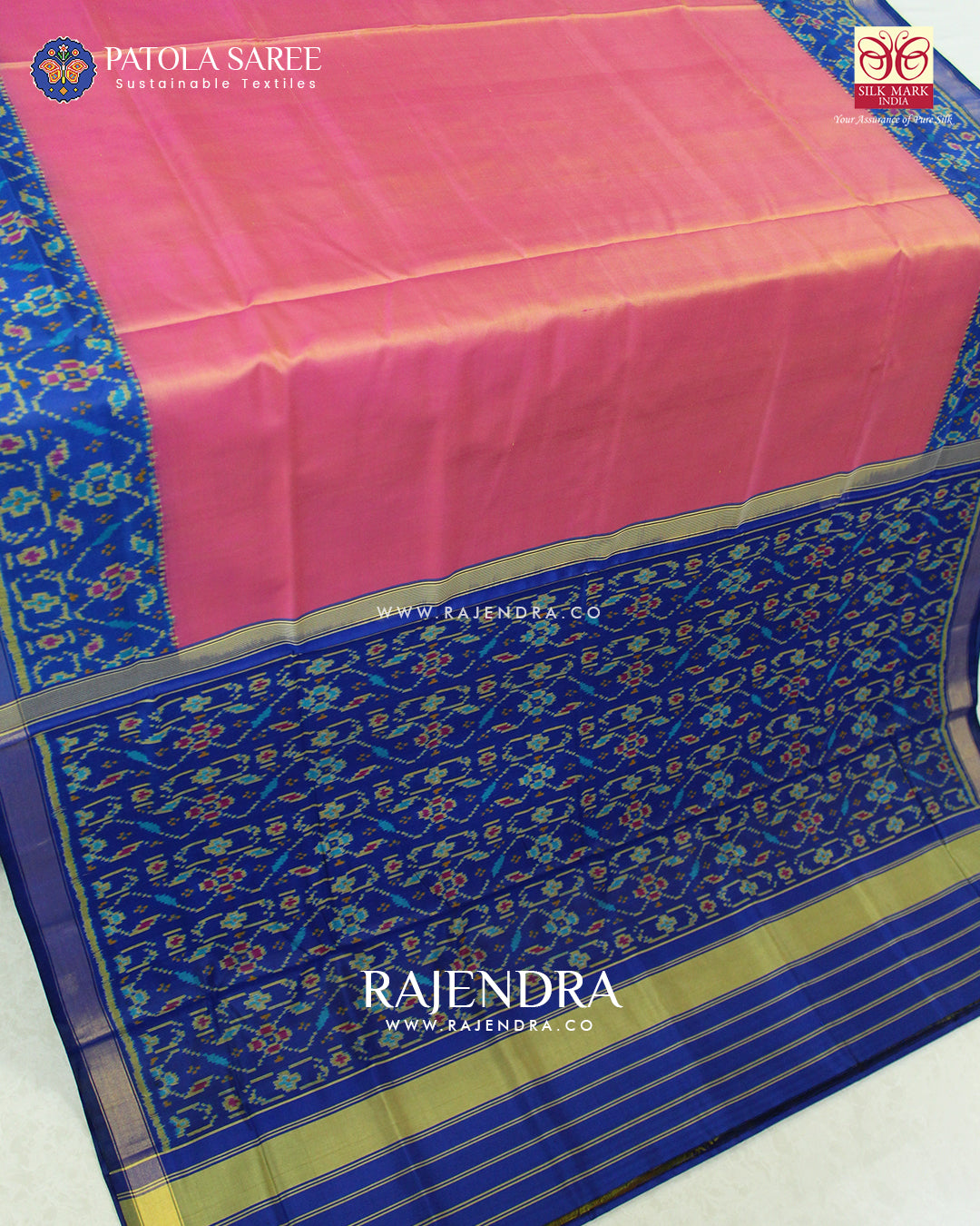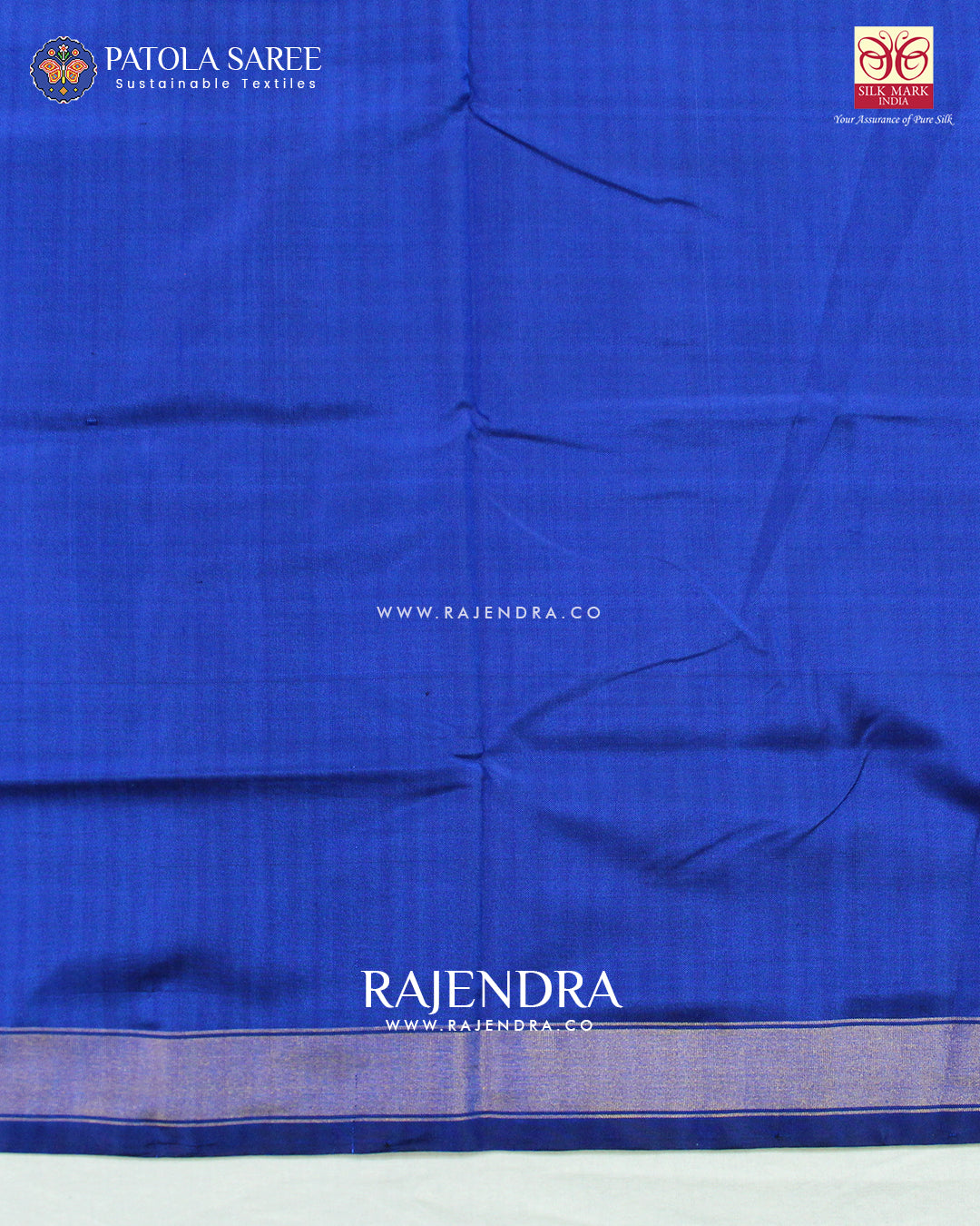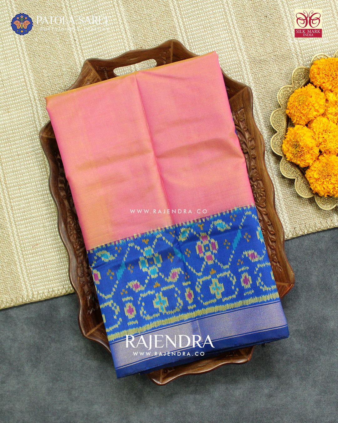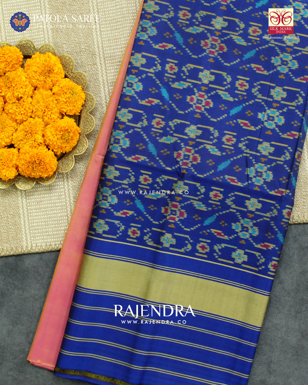 Traditional Gala Border Blue and Peach Single Ikat Rajkot Patola Saree
