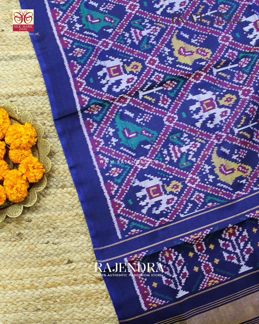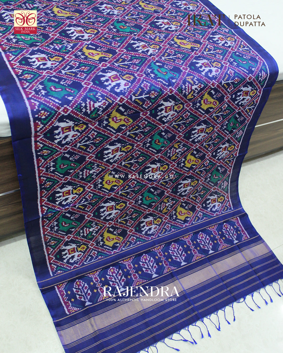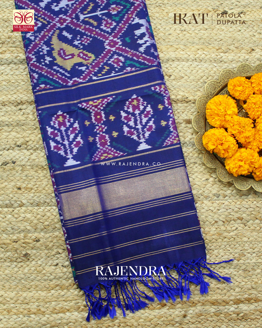 Exclusive 4 Figure Blue Ikat Rajkot Patola Dupatta