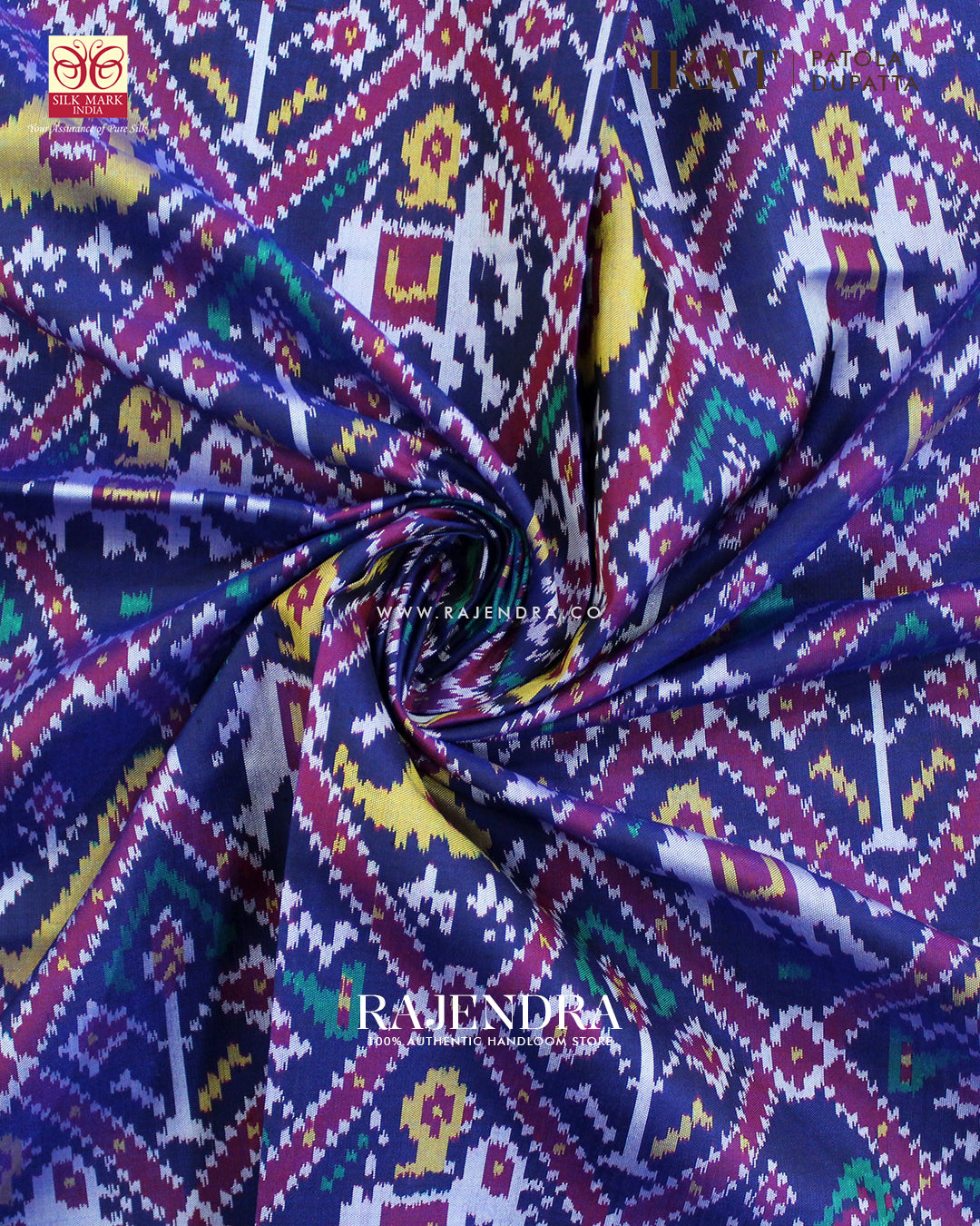 We are govt. approved silk mark certified store for heirloom rajkot patola saree. Authentic silk mark tag with all purchase and secure payment options. Whenever you buy silk make sure it has a silk mark label. The only symbol of purity of silk: the silk mark label. Rajendra Patola assures 100% Silk with Silk mark label.