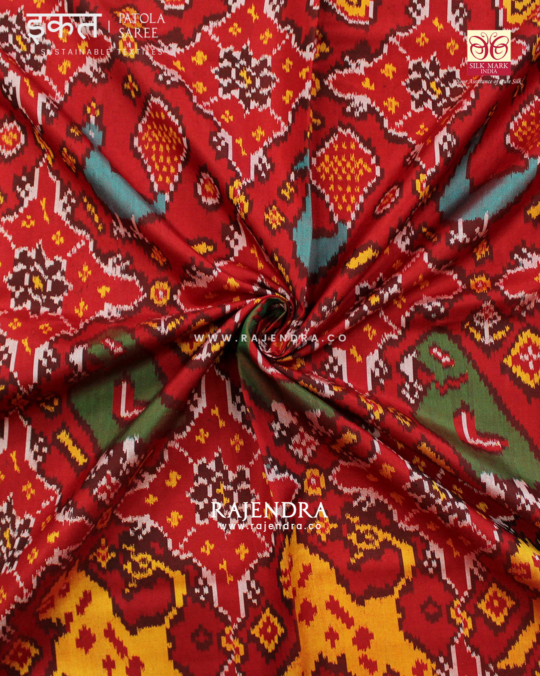 We are govt. approved silk mark certified store for heirloom rajkot patola saree. Authentic silk mark tag with all purchase and secure payment options. Whenever you buy silk make sure it has a silk mark label. The only symbol of purity of silk: the silk mark label. Rajendra Patola assures 100% Silk with Silk mark label.