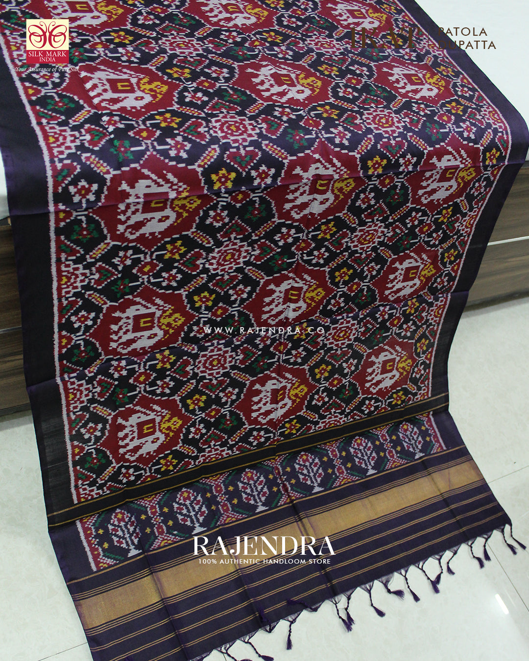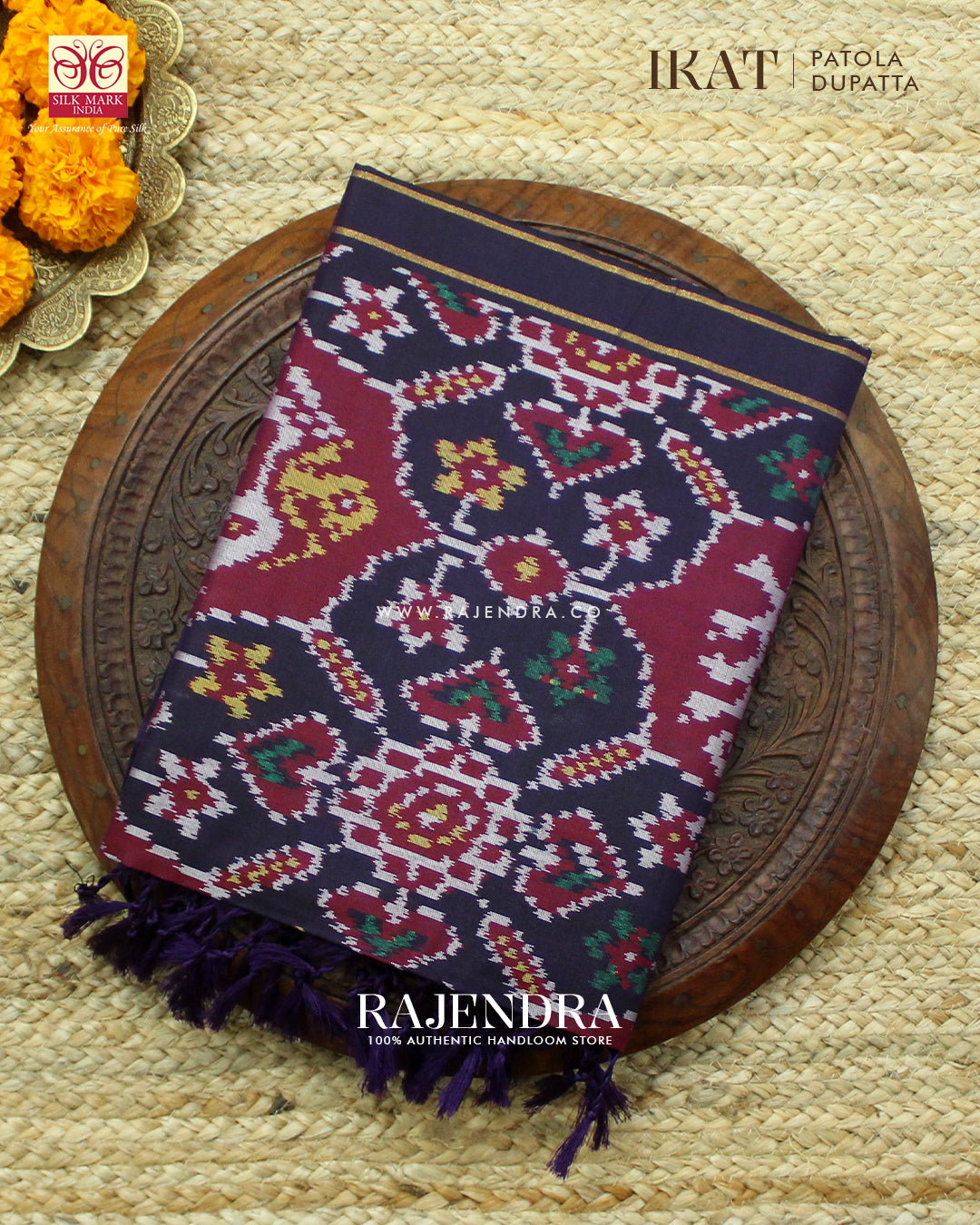 Exclusive Elephant Motif Dark Purple Ikat Rajkot Patola Dupatta
