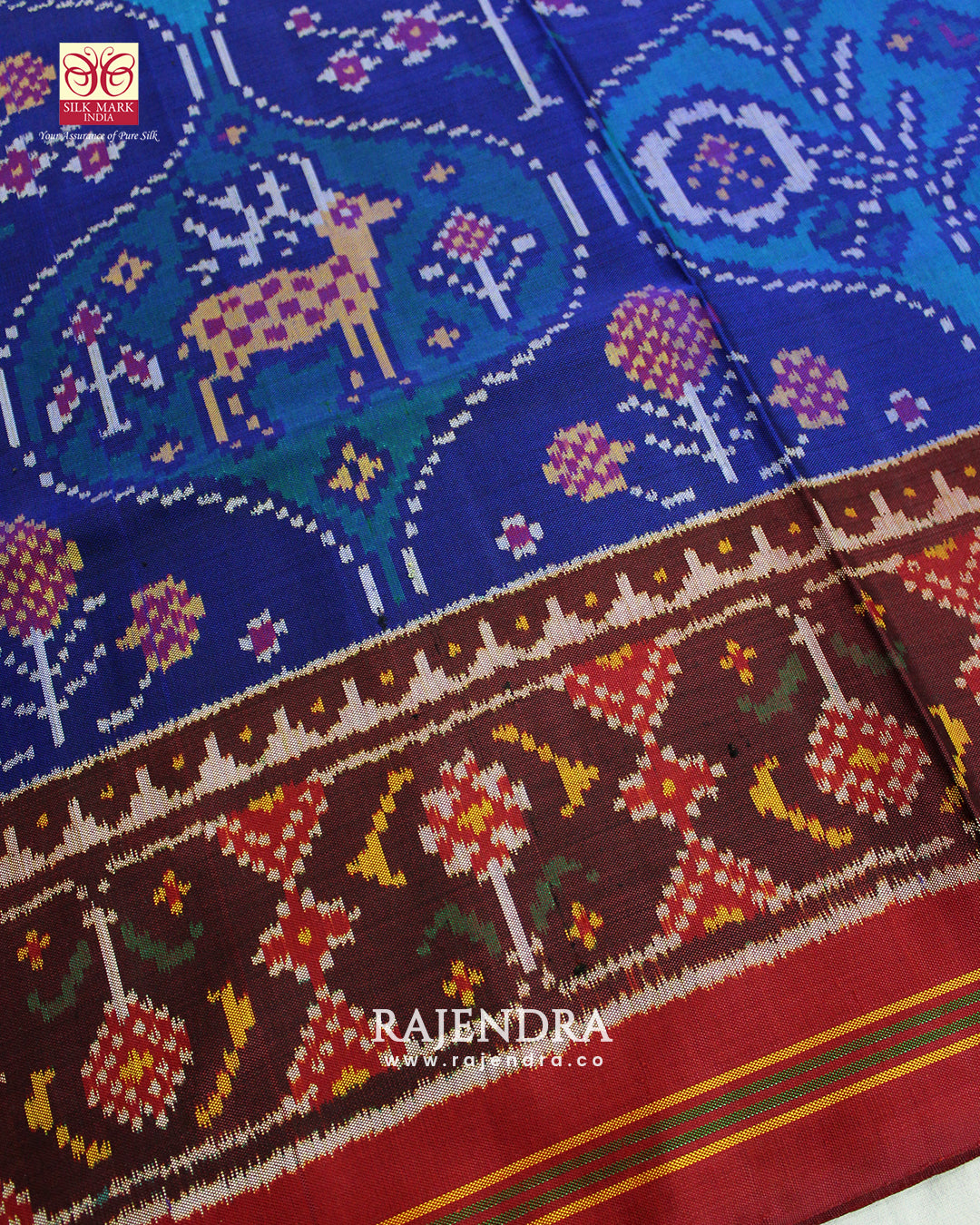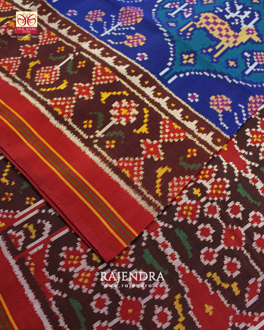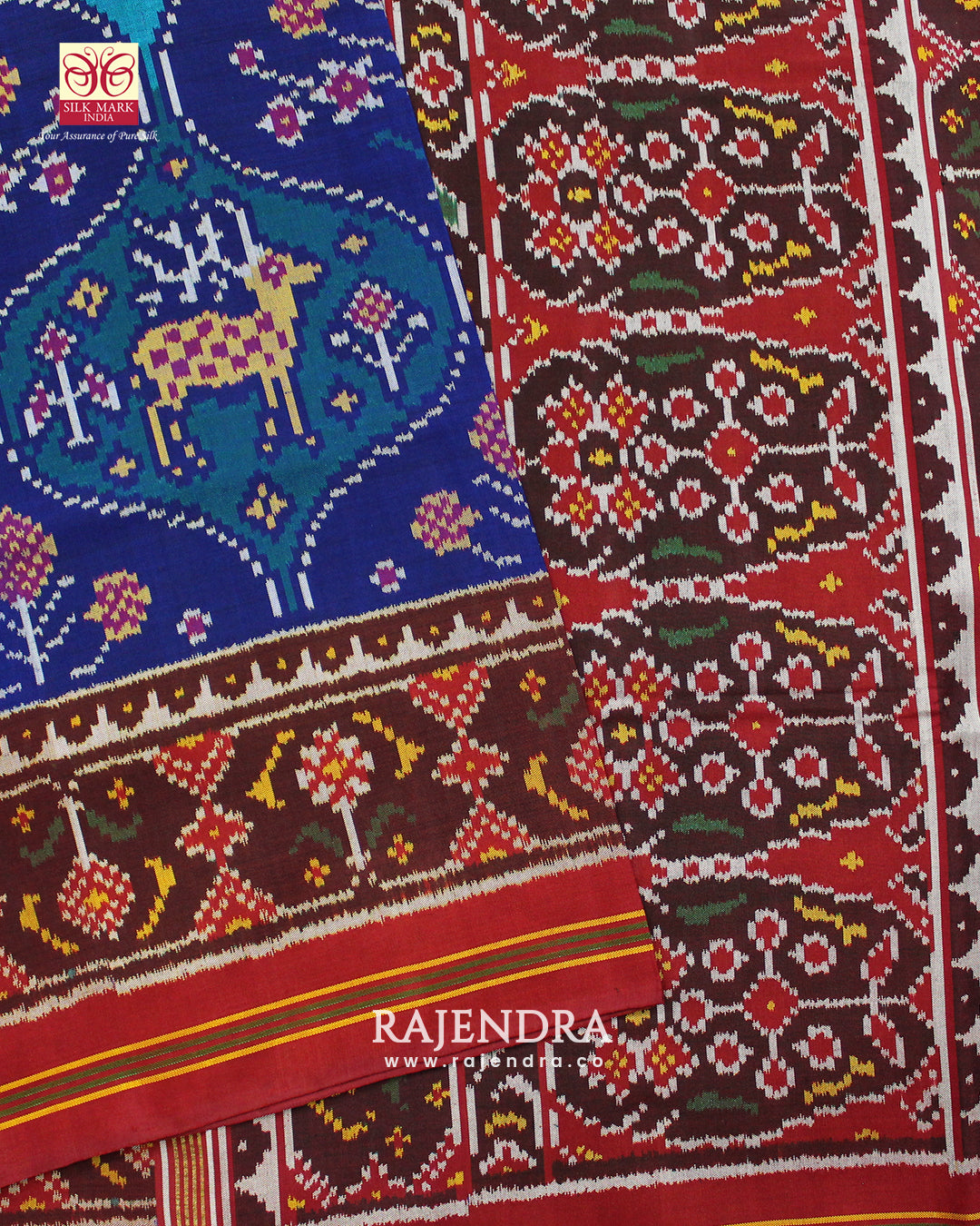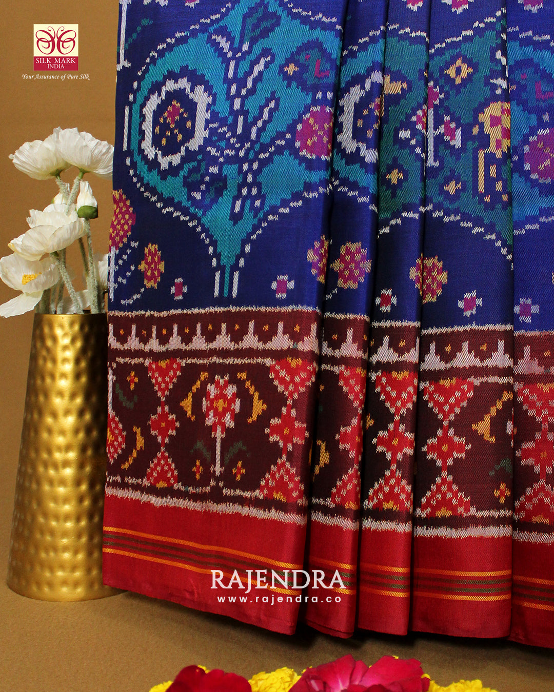 Exclusive Design Red and Blue Semi Double Ikkat Rajkot Patola Saree