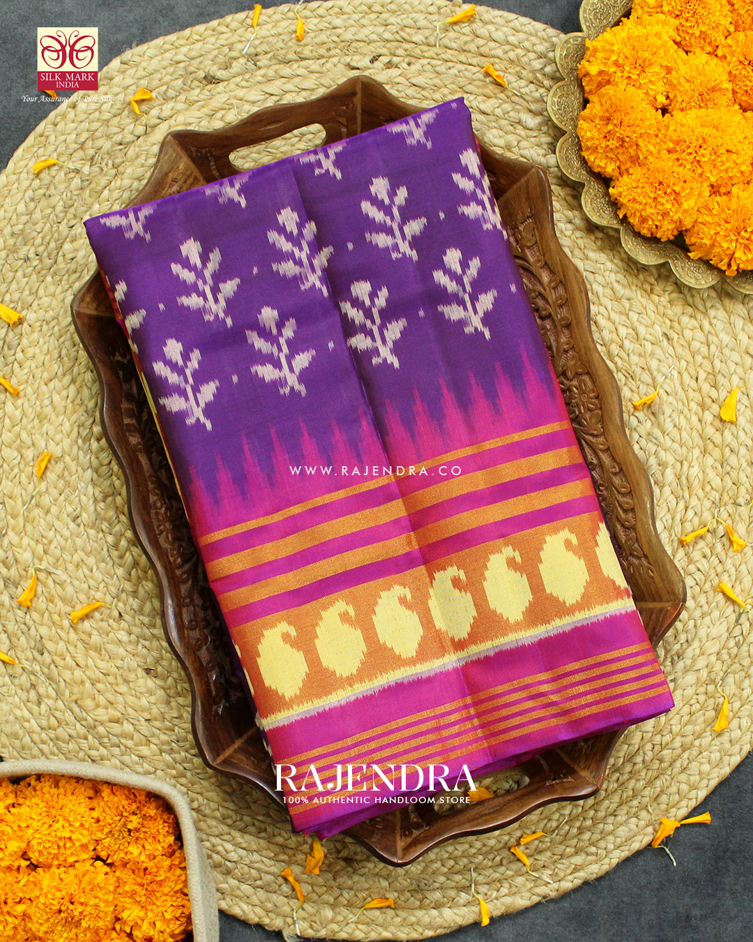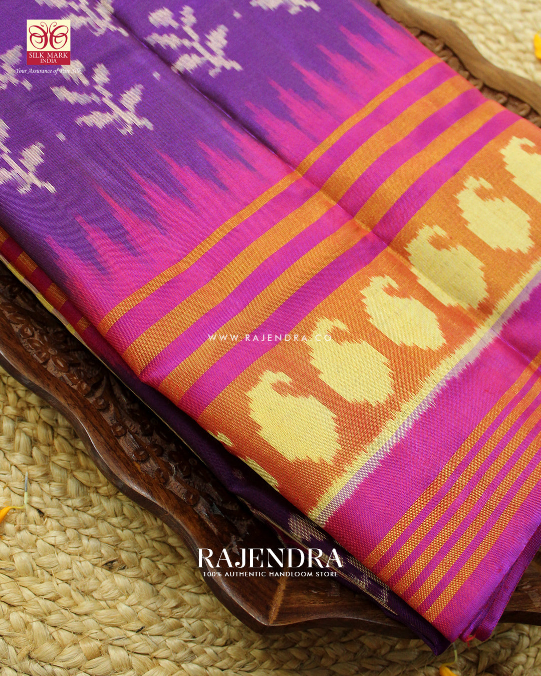 Exclusive Flowers Design Pink and Purple Single Ikat Rajkot Patola Saree