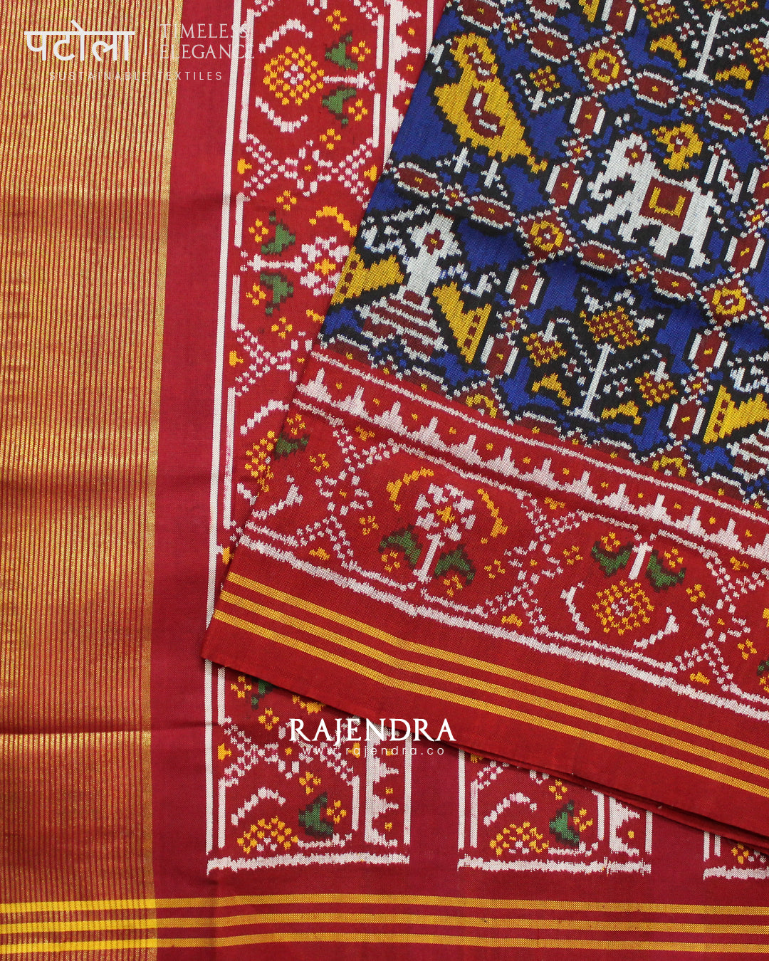 Exclusive Hathi Popat Red and Blue Semi Double Ikat Rajkot Patola Saree