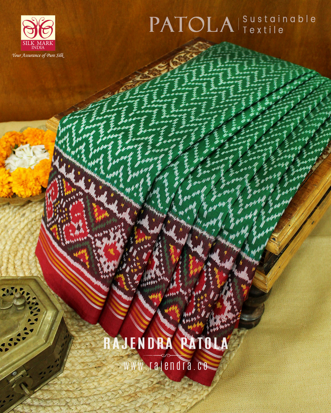 We are govt. approved silk mark certified store for heirloom rajkot patola saree. Authentic silk mark tag with all purchase and secure payment options. Whenever you buy silk make sure it has a silk mark label. The only symbol of purity of silk: the silk mark label. Rajendra Patola assures 100% Silk with Silk mark label.
