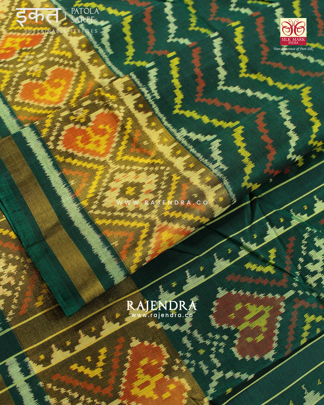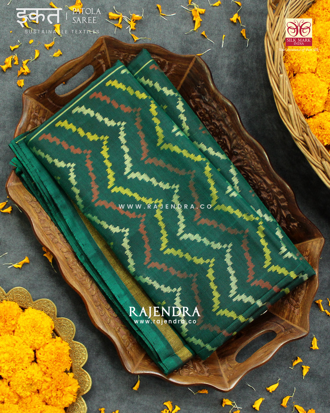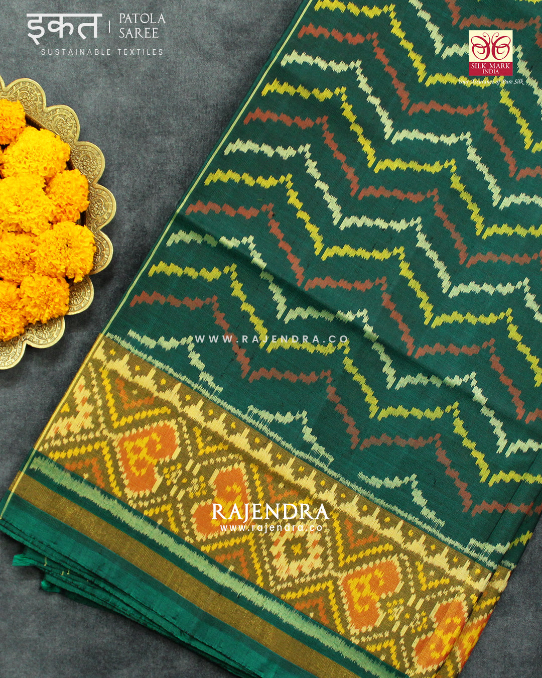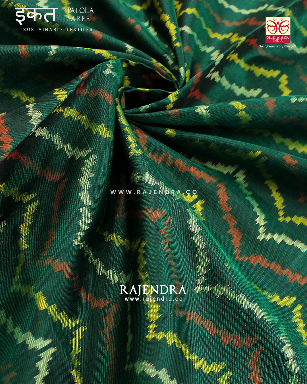 Exclusive Laheriya Design Green Single Ikat Rajkot Patola Saree