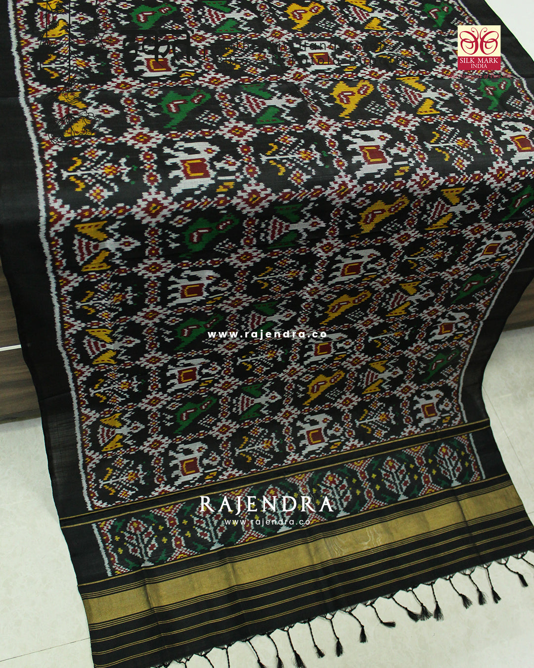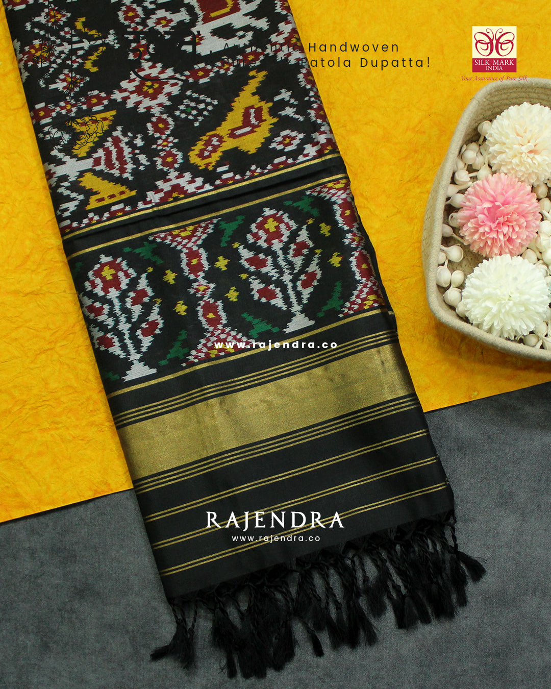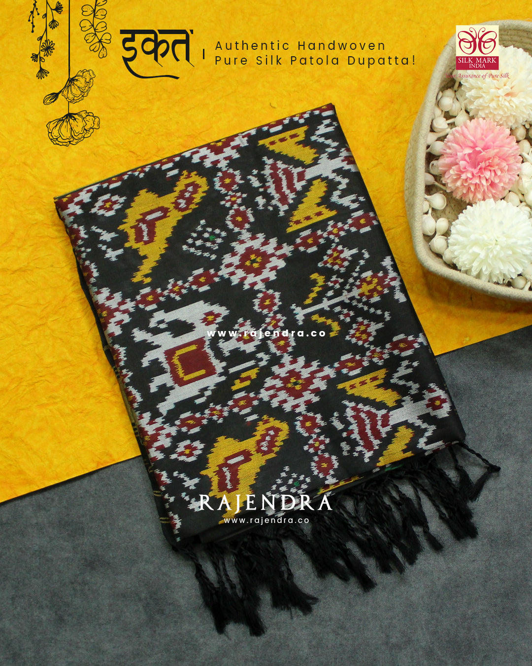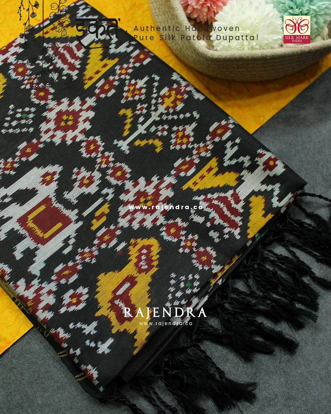 Exclusive Navratna Design Black Semi Double Ikat Rajkot Patola Dupatta