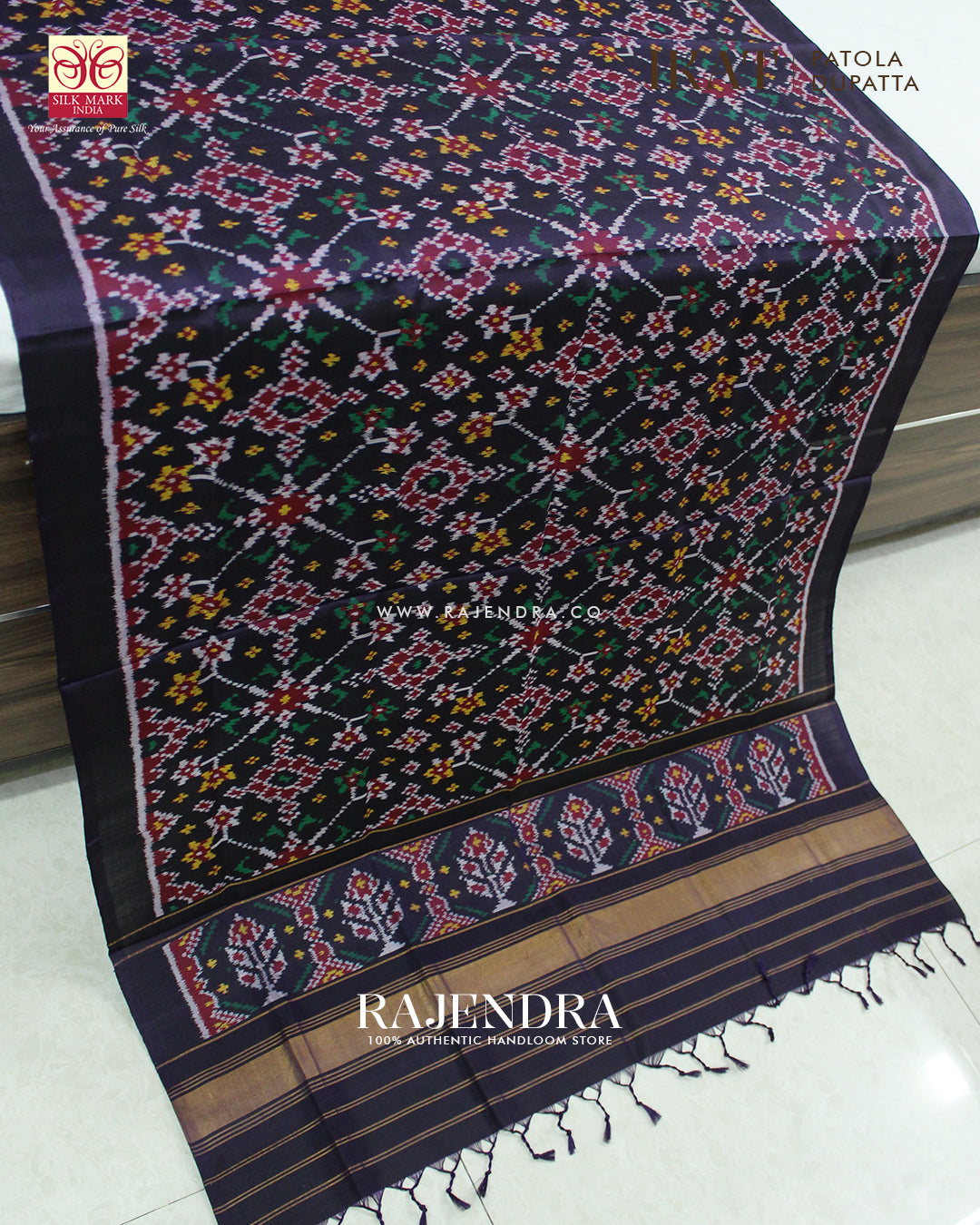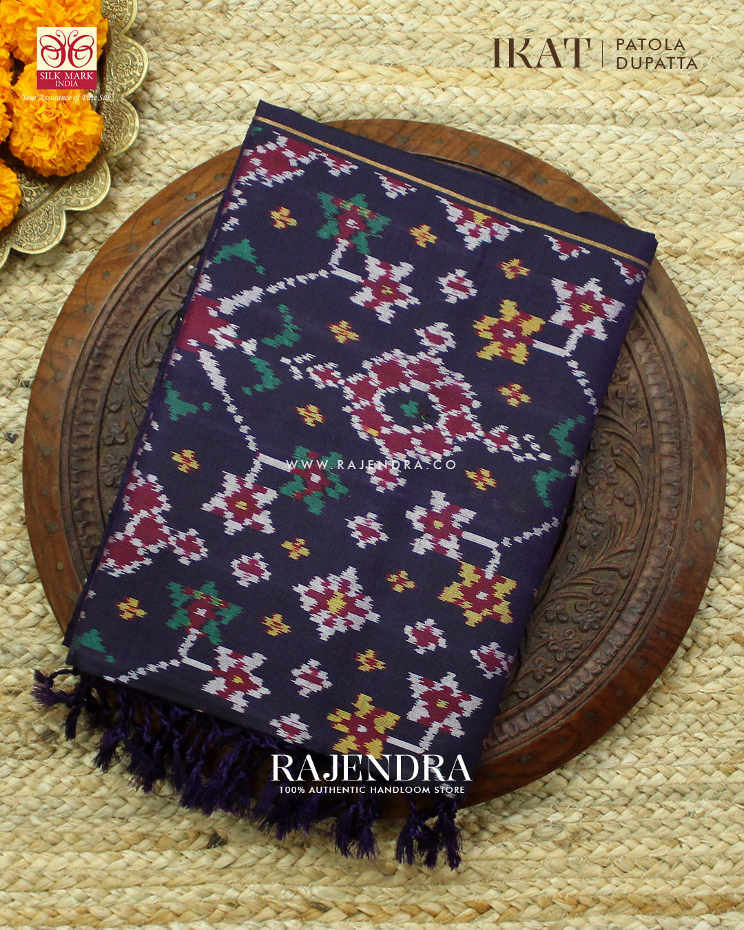 Exclusive Navratna Design Dark Purple Ikat Rajkot Patola Dupatta