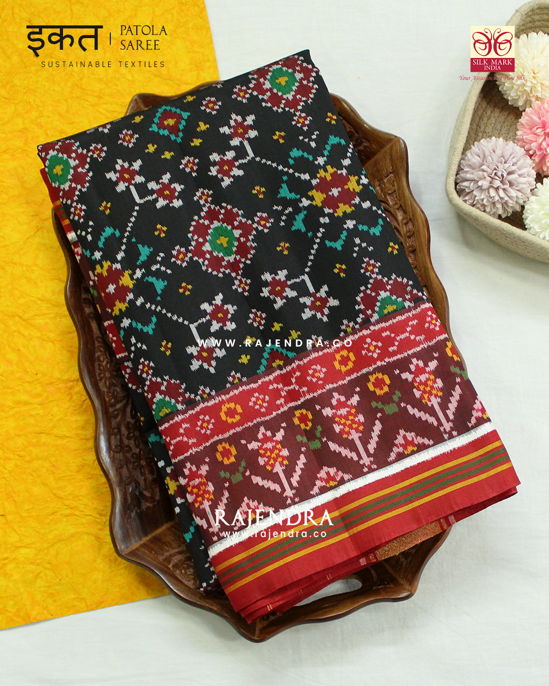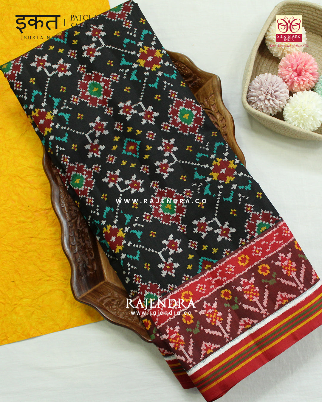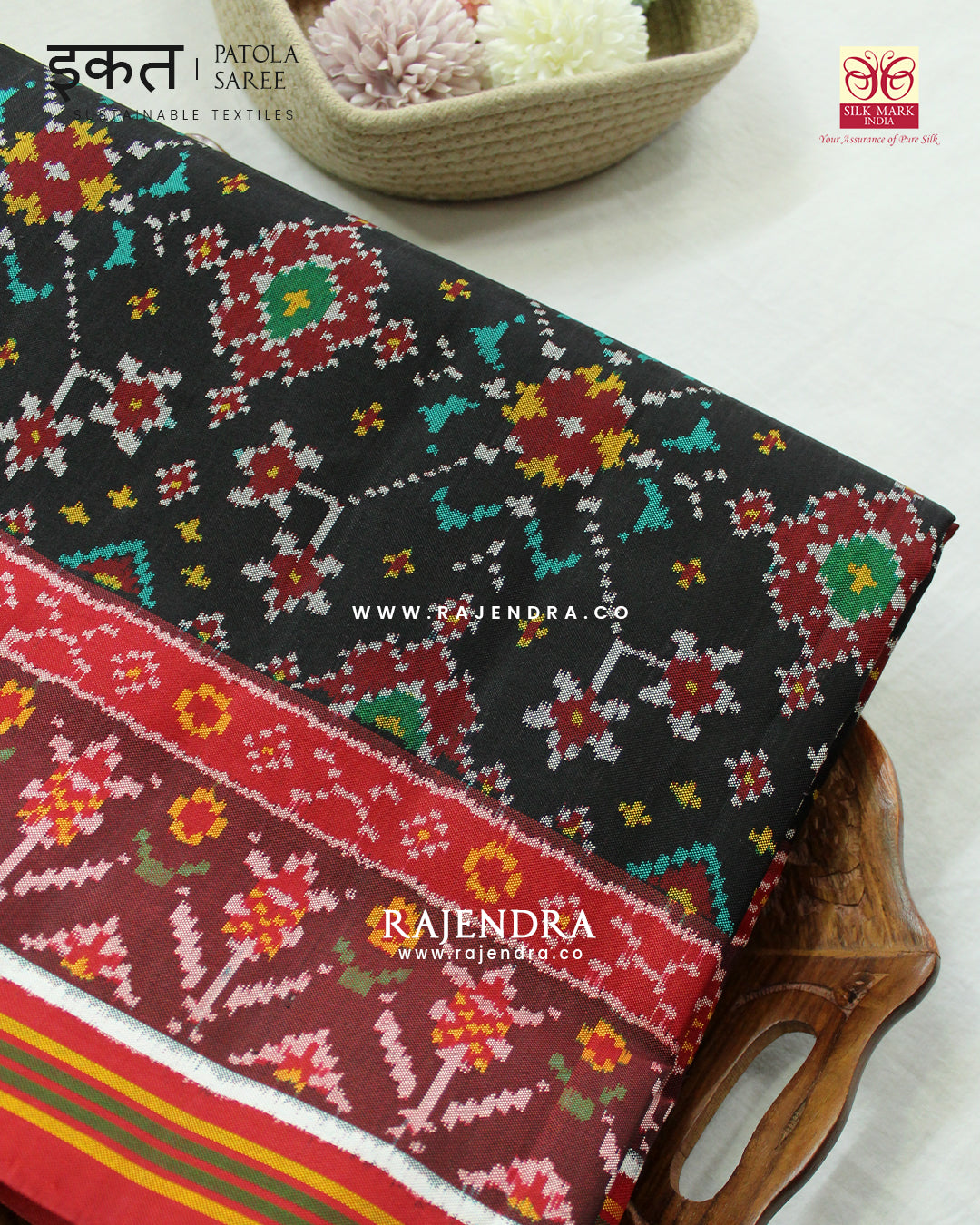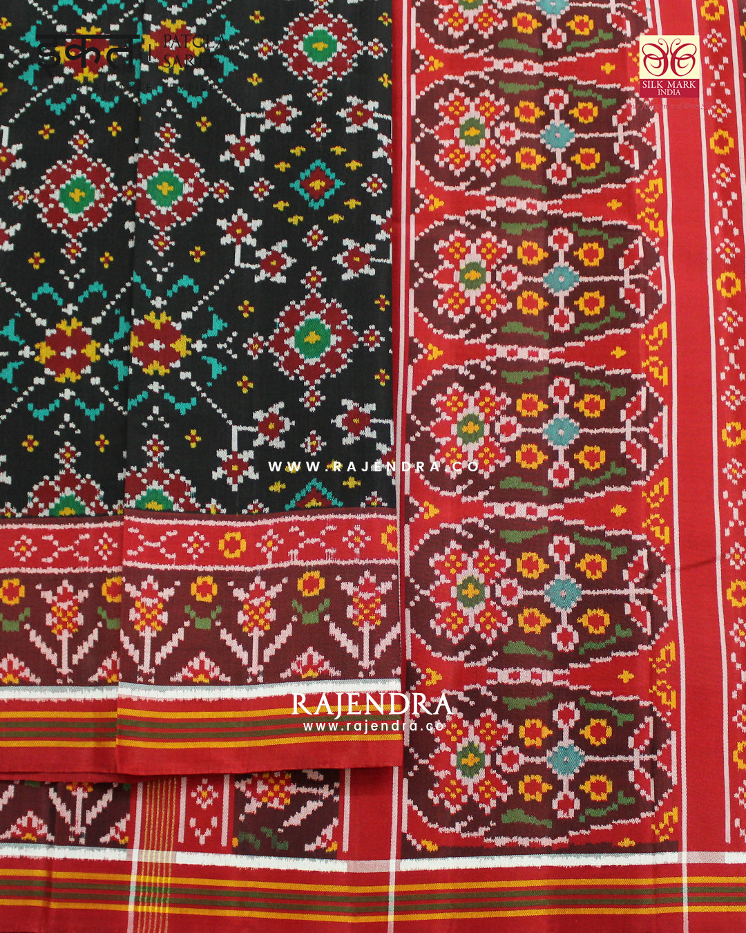 Exclusive Navratna Design Red and Black Semi Double Ikat Rajkot Patola Saree