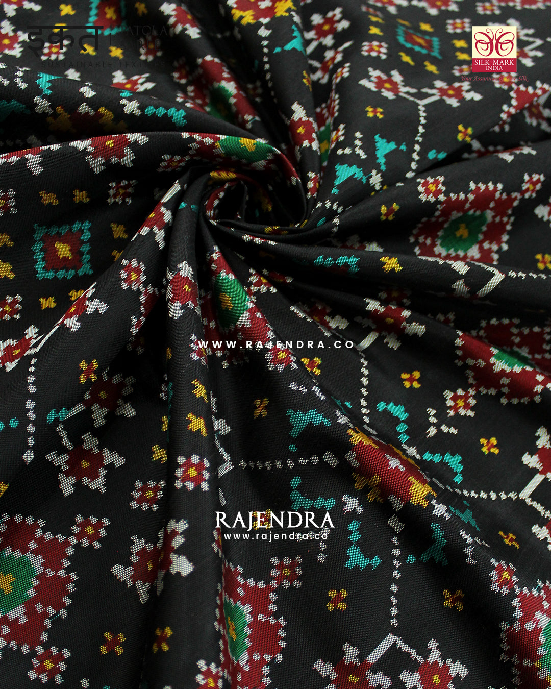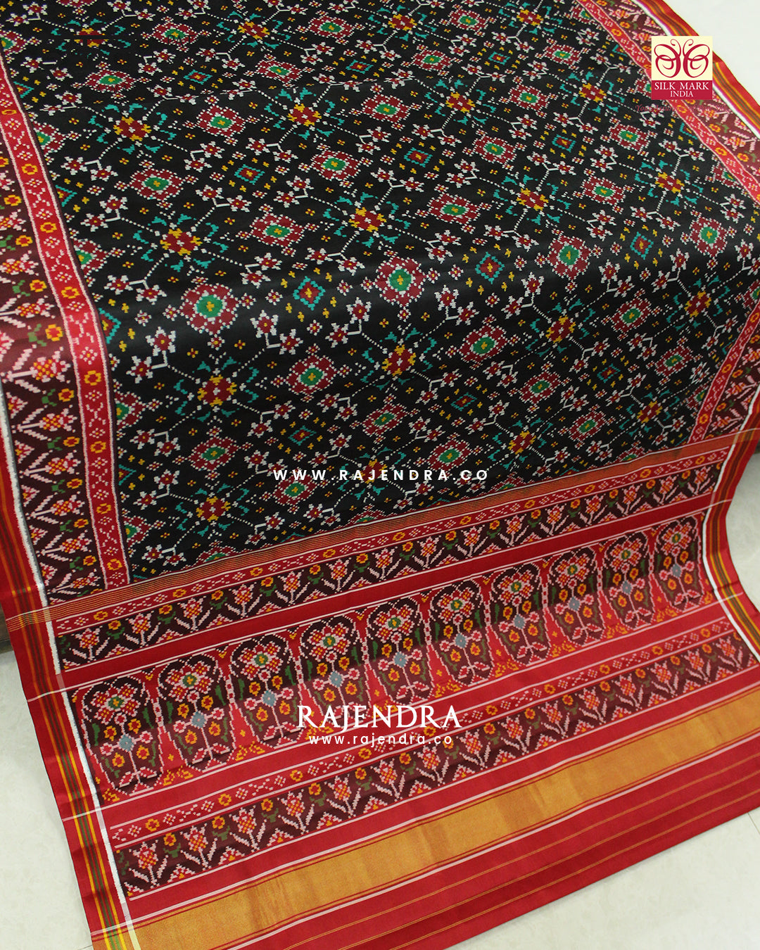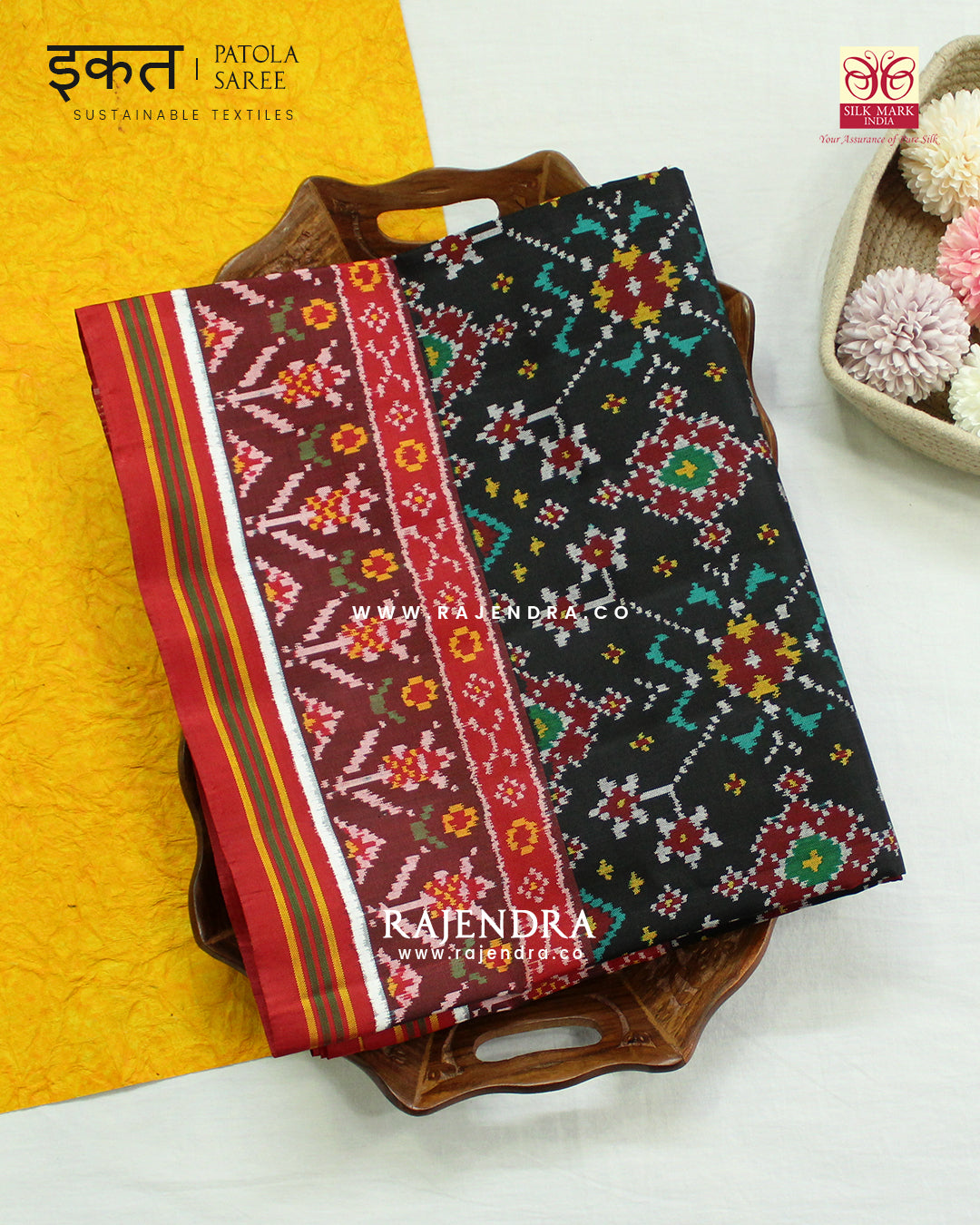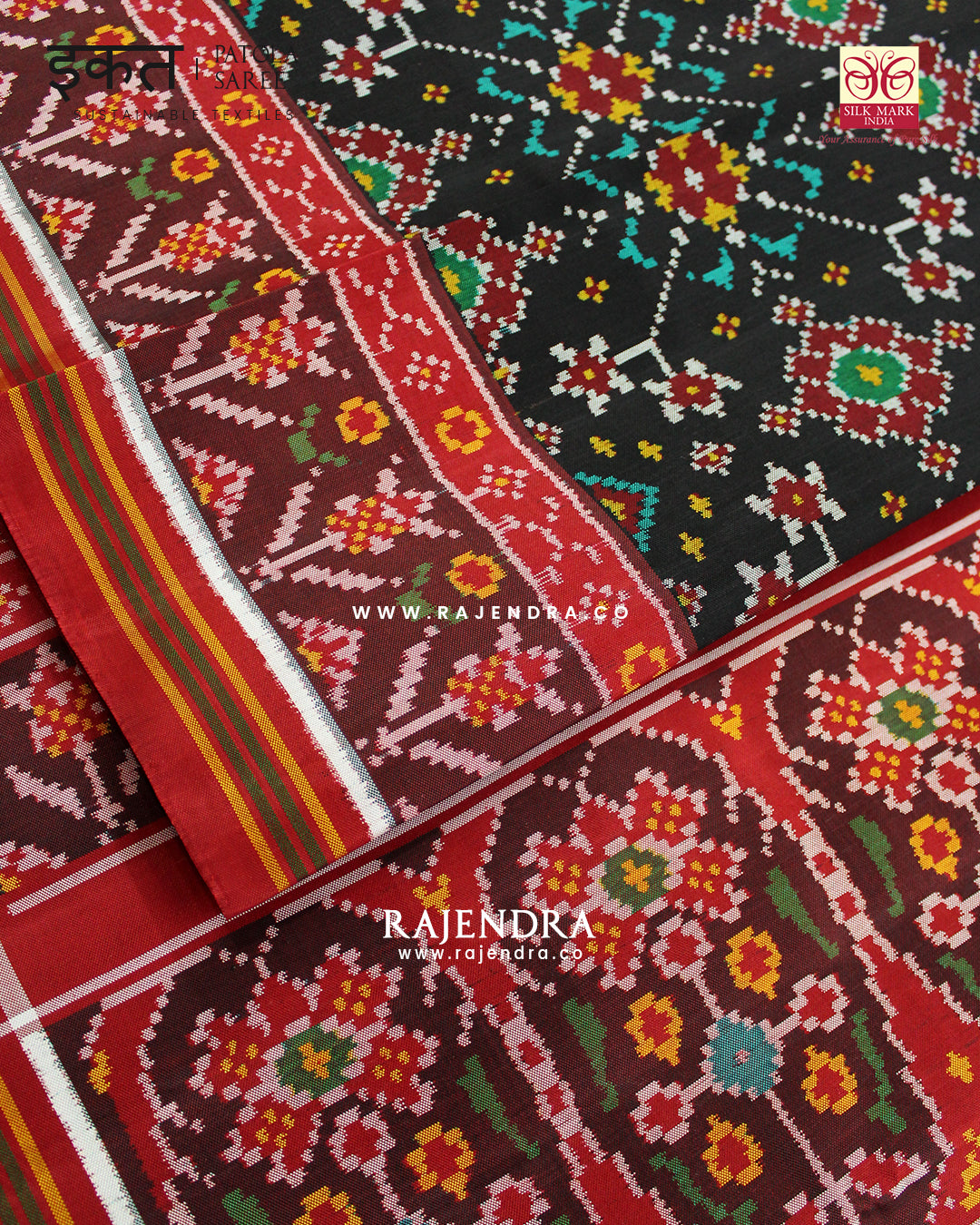 Exclusive Navratna Design Red and Black Semi Double Ikat Rajkot Patola Saree