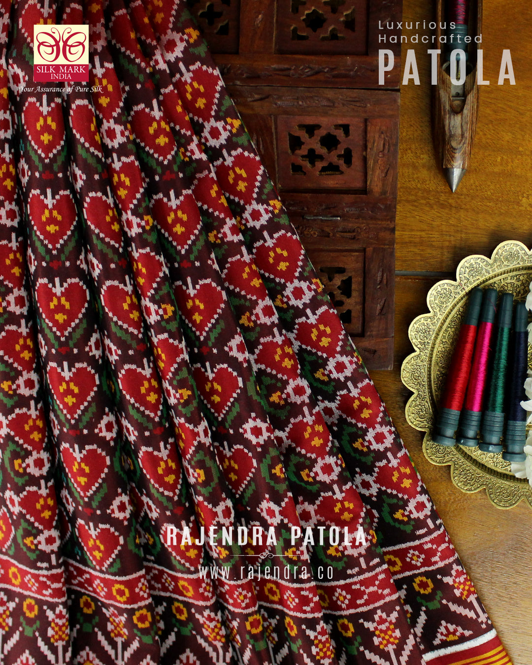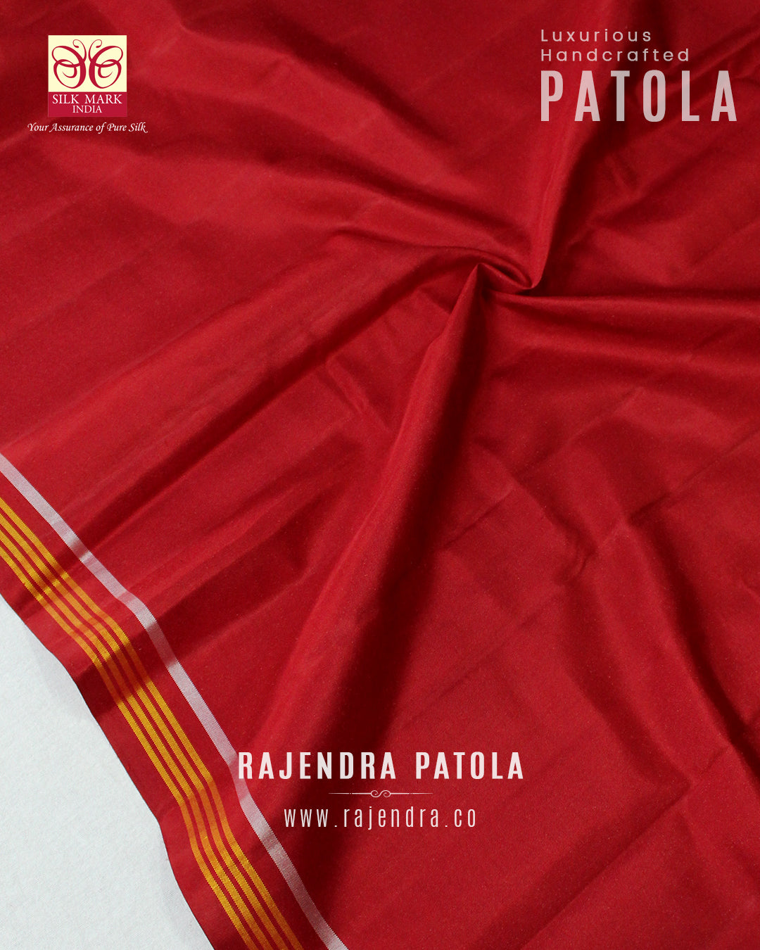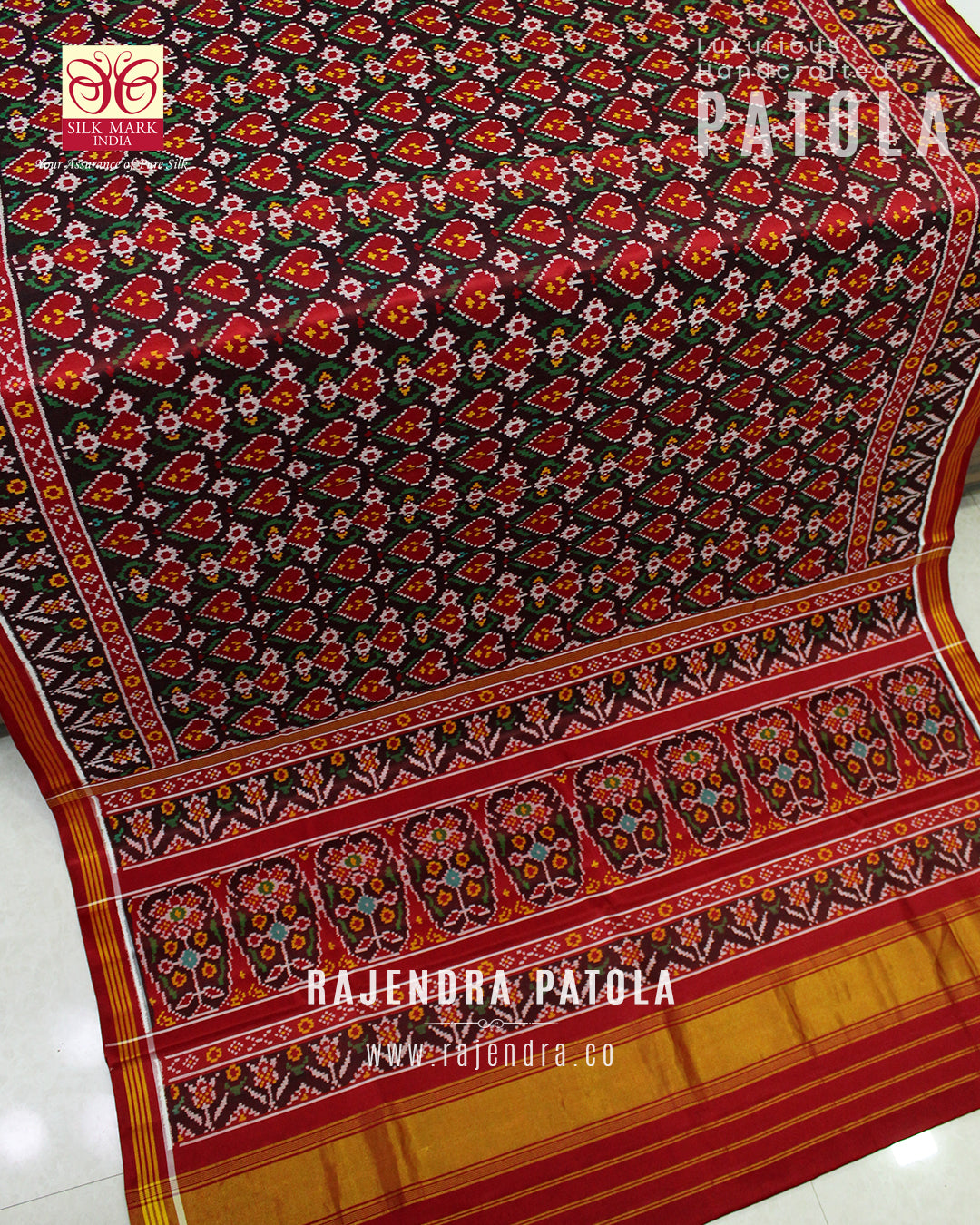 We are govt. approved silk mark certified store for heirloom rajkot patola saree. Authentic silk mark tag with all purchase and secure payment options. Whenever you buy silk make sure it has a silk mark label. The only symbol of purity of silk: the silk mark label. Rajendra Patola assures 100% Silk with Silk mark label.