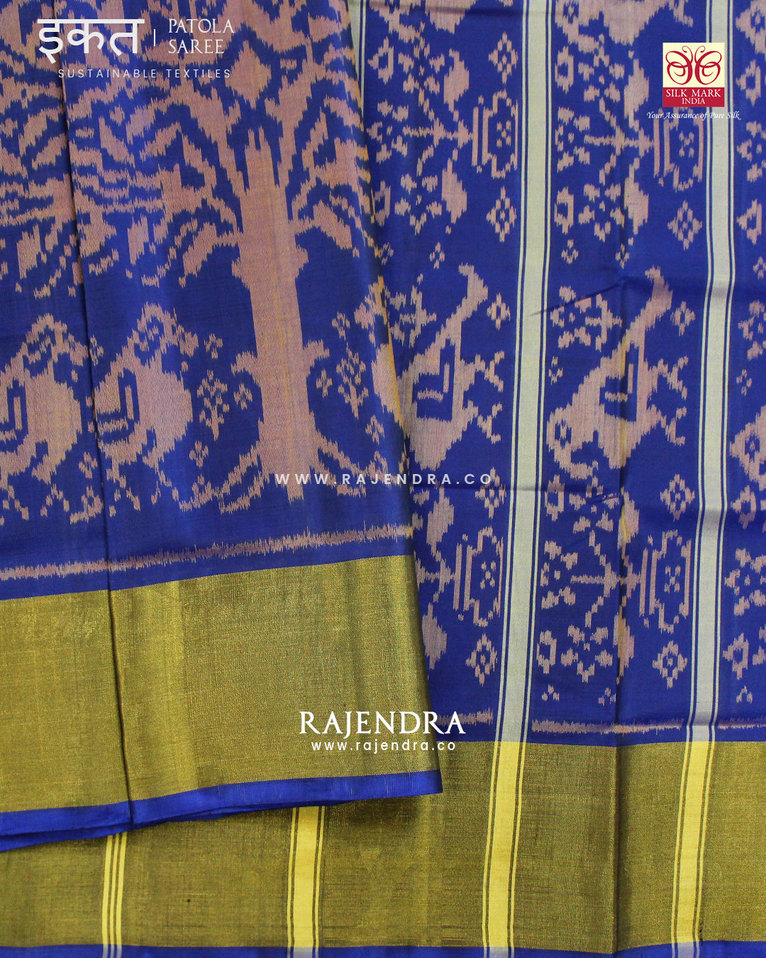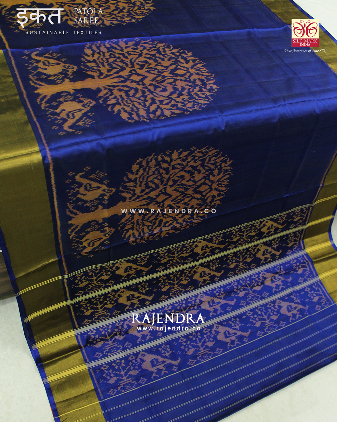 Exclusive Parrot Motif Blue Single Ikat Rajkot Patola Saree