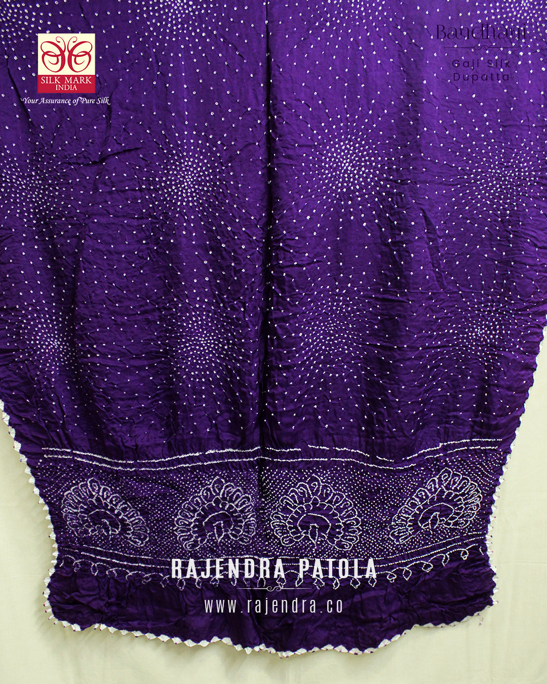 • Exclusive Peacock Motif Pure Gaji Silk Bandhani Dupatta
