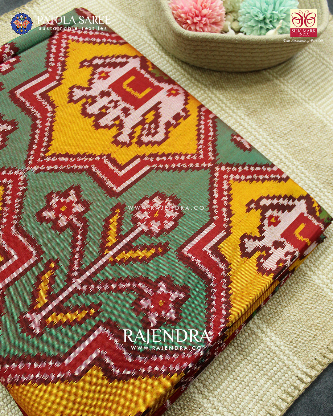We are govt. approved silk mark certified store for heirloom rajkot patola saree. Authentic silk mark tag with all purchase and secure payment options. Whenever you buy silk make sure it has a silk mark label. The only symbol of purity of silk: the silk mark label. Rajendra Patola assures 100% Silk with Silk mark label.