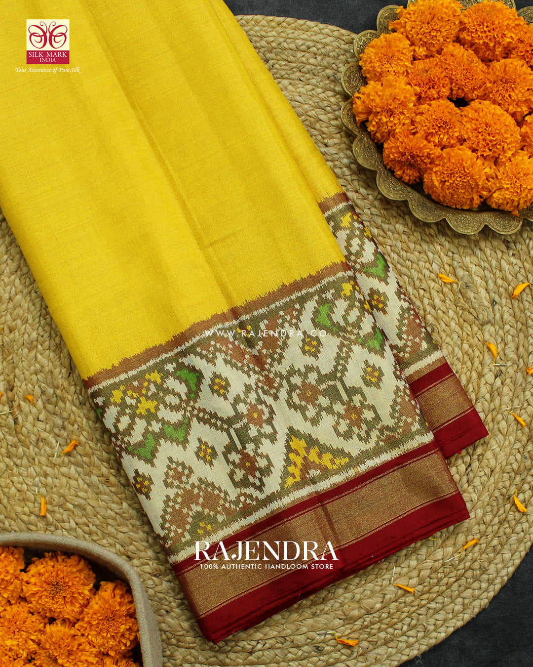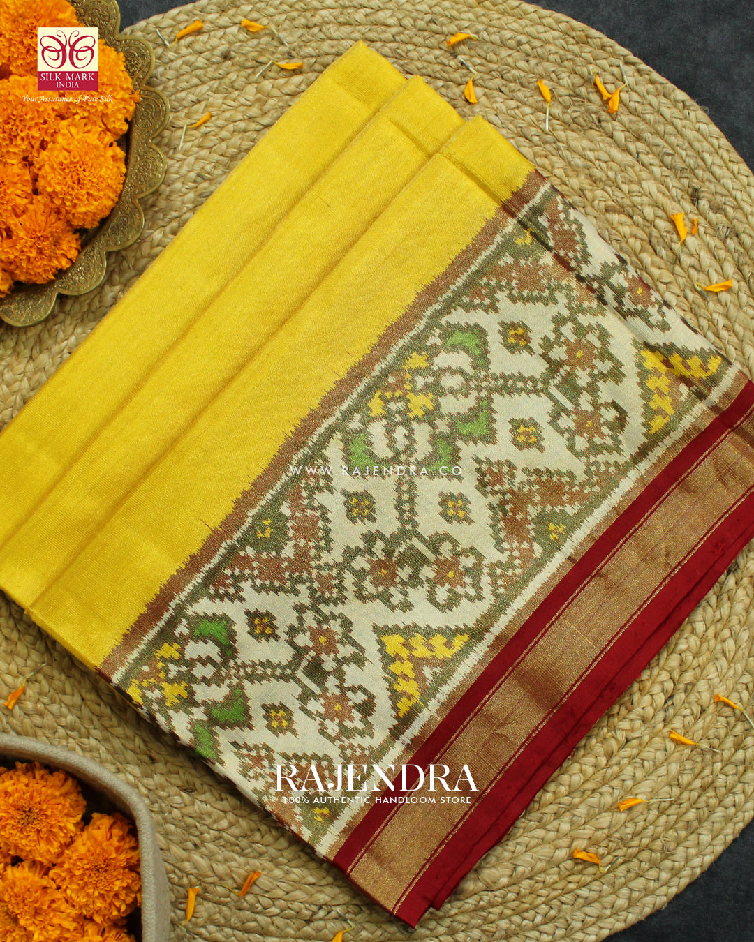 Exclusive Zari Tissue Red and Yellow Gala Border Rajkot Patola Saree