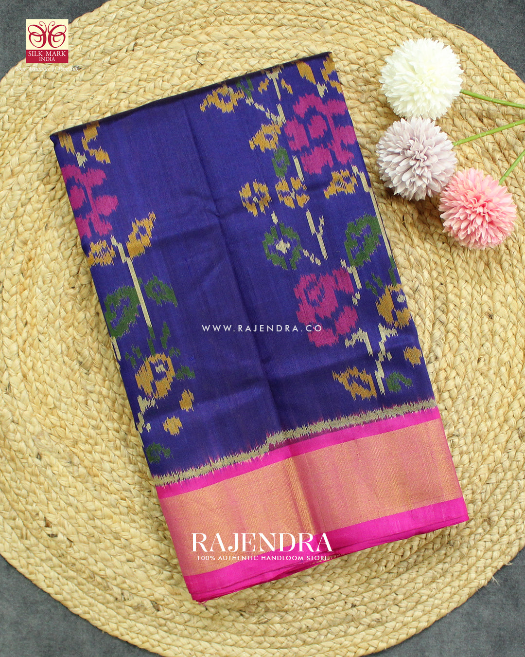 Fancy Flowers Design Pink and Blue Single Ikat Rajkot Patola Saree