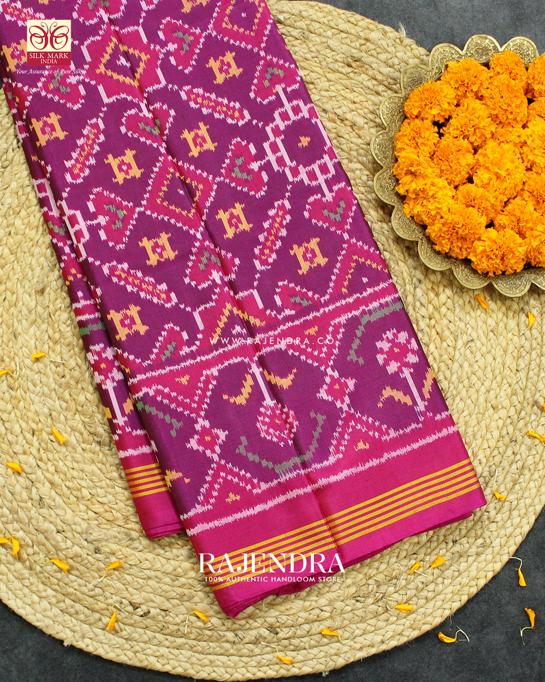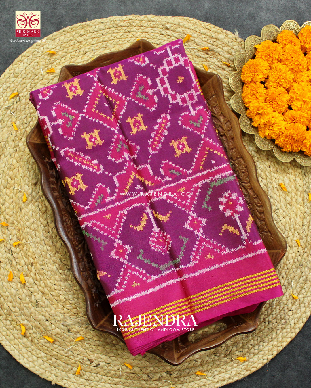 We are govt. approved silk mark certified store for heirloom rajkot patola saree. Authentic silk mark tag with all purchase and secure payment options. Whenever you buy silk make sure it has a silk mark label. The only symbol of purity of silk: the silk mark label. Rajendra Patola assures 100% Silk with Silk mark label.