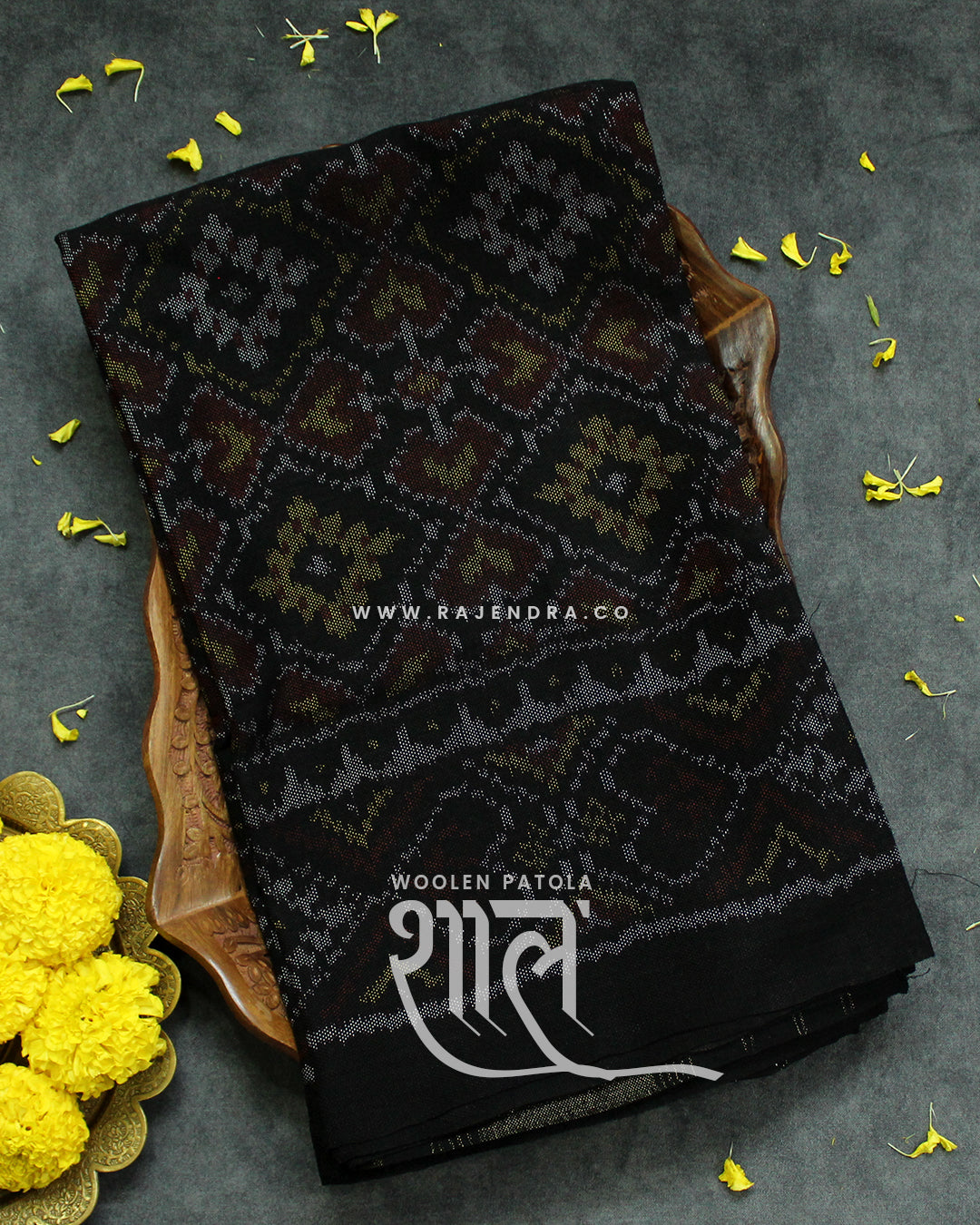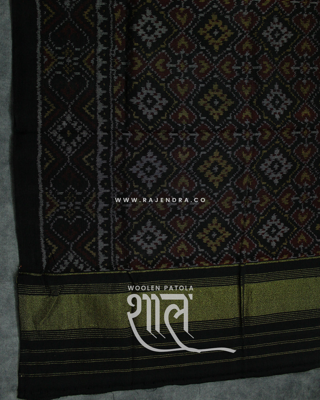 Handwoven Panchanda Design Black Woolen Patola Shawls