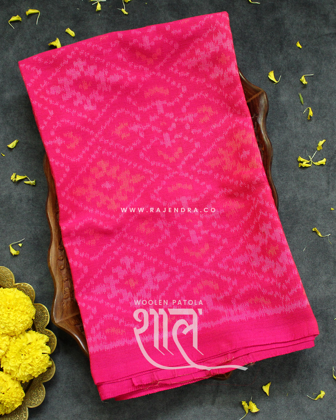 Handwoven Panchanda Design Light Pink Woolen Patola Shawls