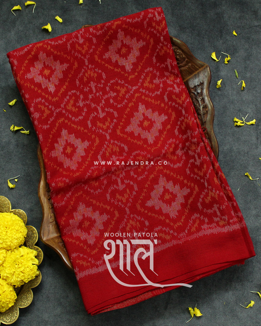 Handwoven Panchanda Design Red Woolen Patola Shawls