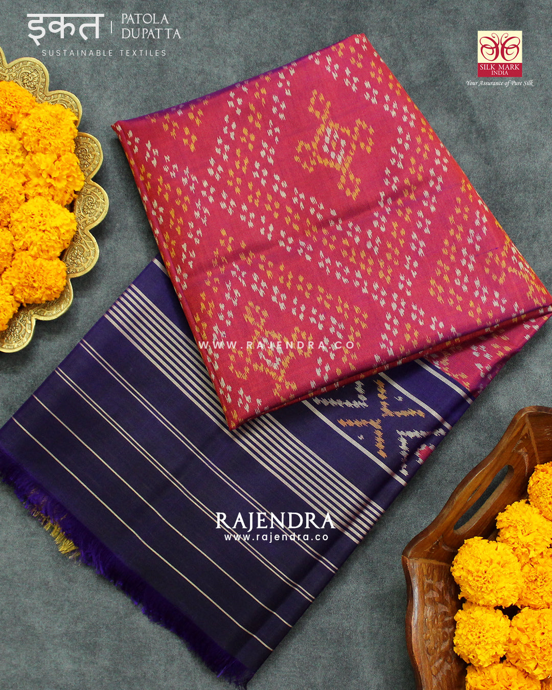 Traditional Bandhani Design Purple Pink Single Ikat Rajkot Patola Dupatta