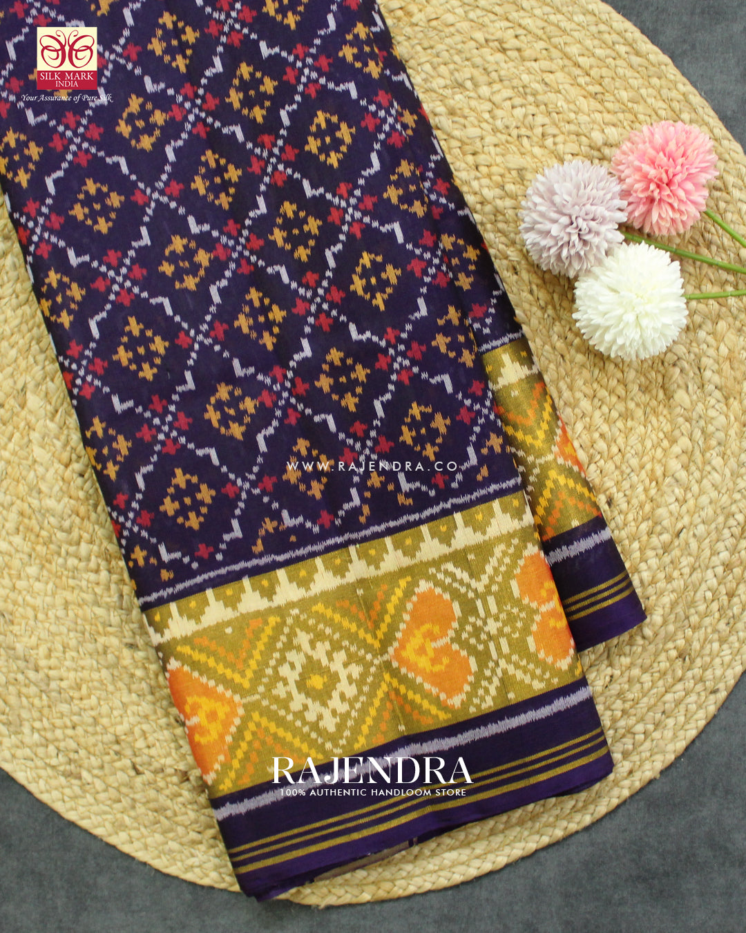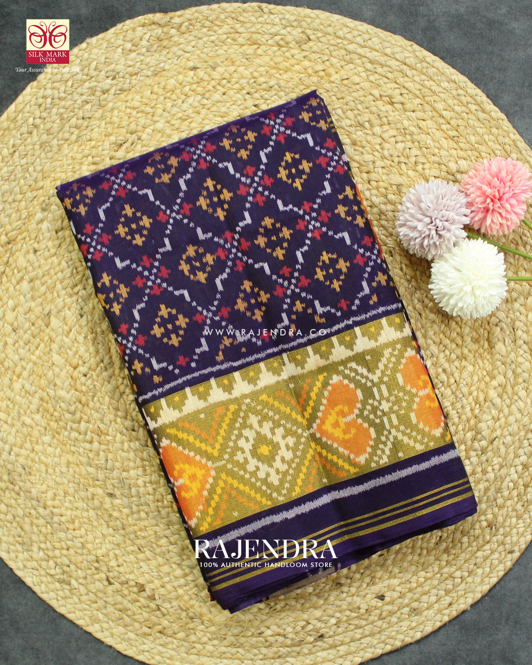 Traditional Buttonful Design Dark Purple Single Ikat Rajkot Patola Saree