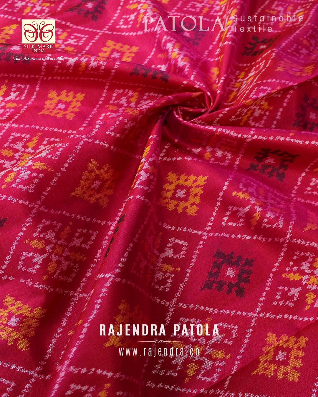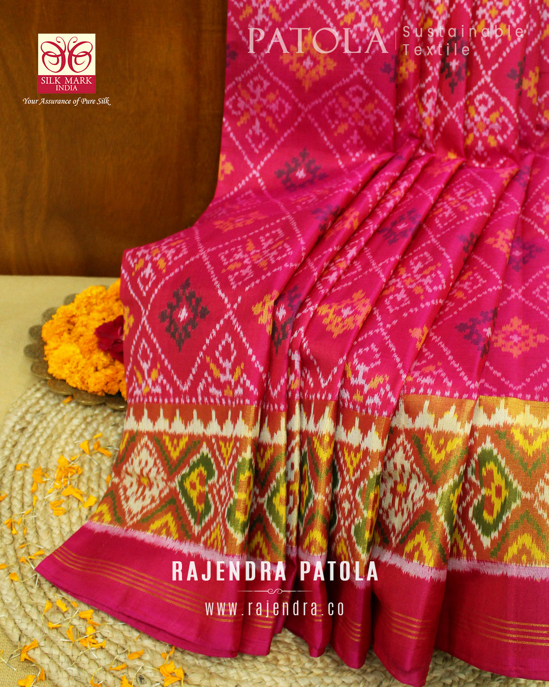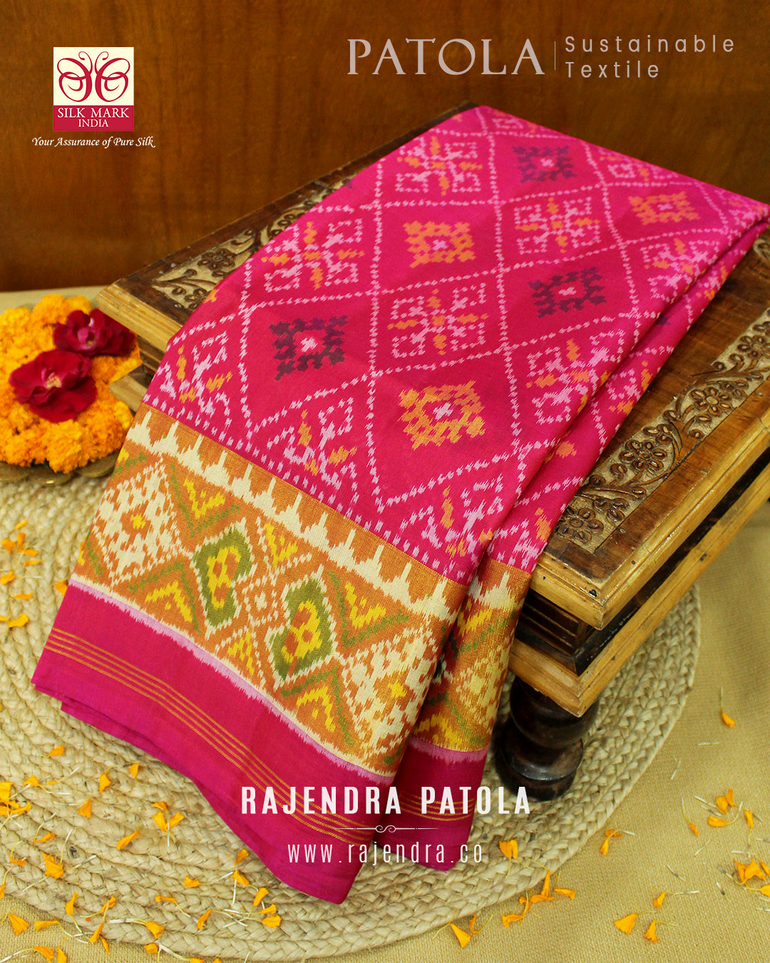 We are govt. approved silk mark certified store for heirloom rajkot patola saree. Authentic silk mark tag with all purchase and secure payment options. Whenever you buy silk make sure it has a silk mark label. The only symbol of purity of silk: the silk mark label. Rajendra Patola assures 100% Silk with Silk mark label.