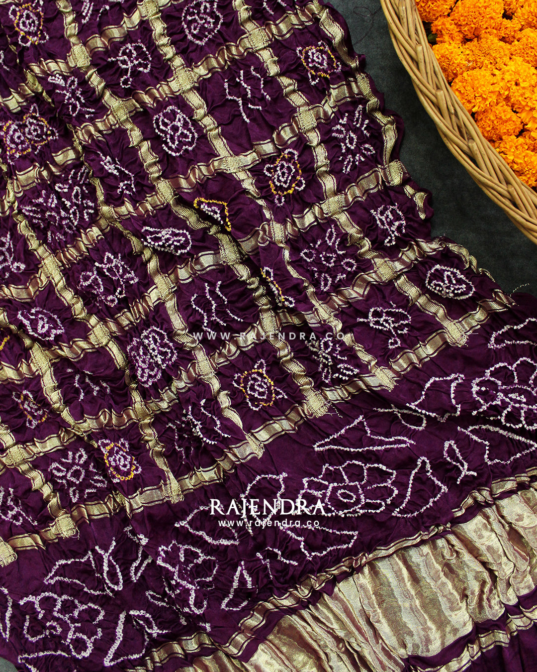 Traditional Dark Purple Pure Gaji Silk Gharchola Bandhani Dupatta