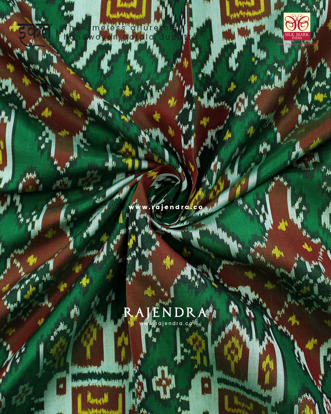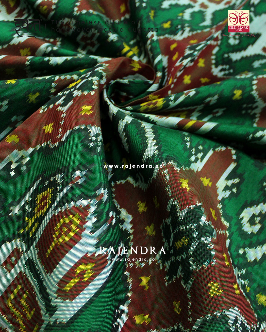 We are govt. approved silk mark certified store for heirloom rajkot patola saree. Authentic silk mark tag with all purchase and secure payment options. Whenever you buy silk make sure it has a silk mark label. The only symbol of purity of silk: the silk mark label. Rajendra Patola assures 100% Silk with Silk mark label.