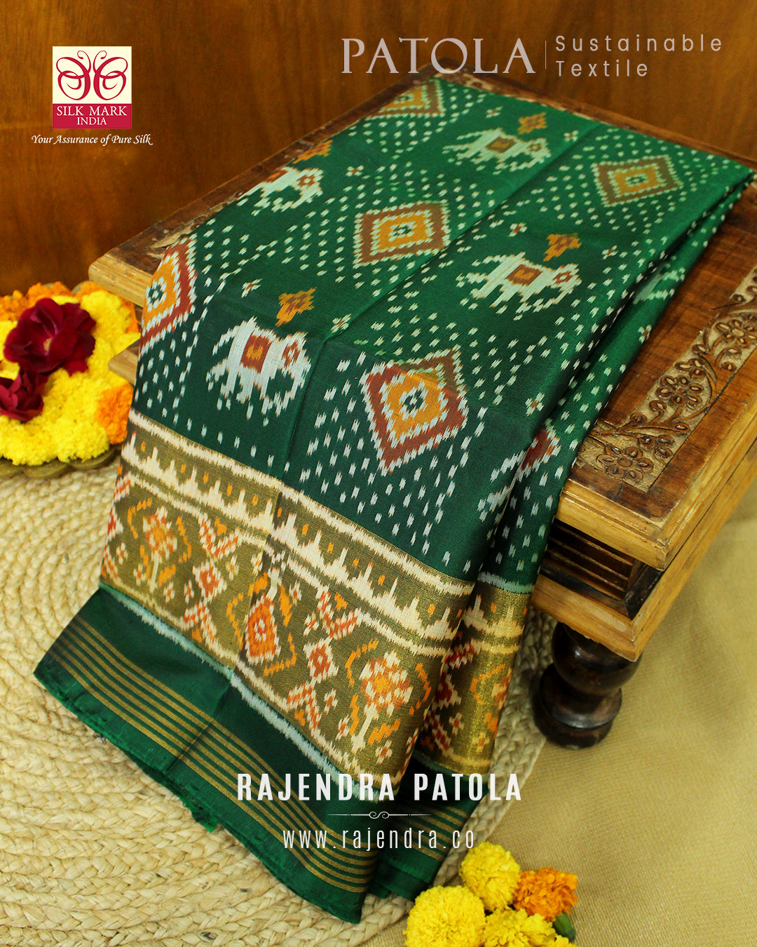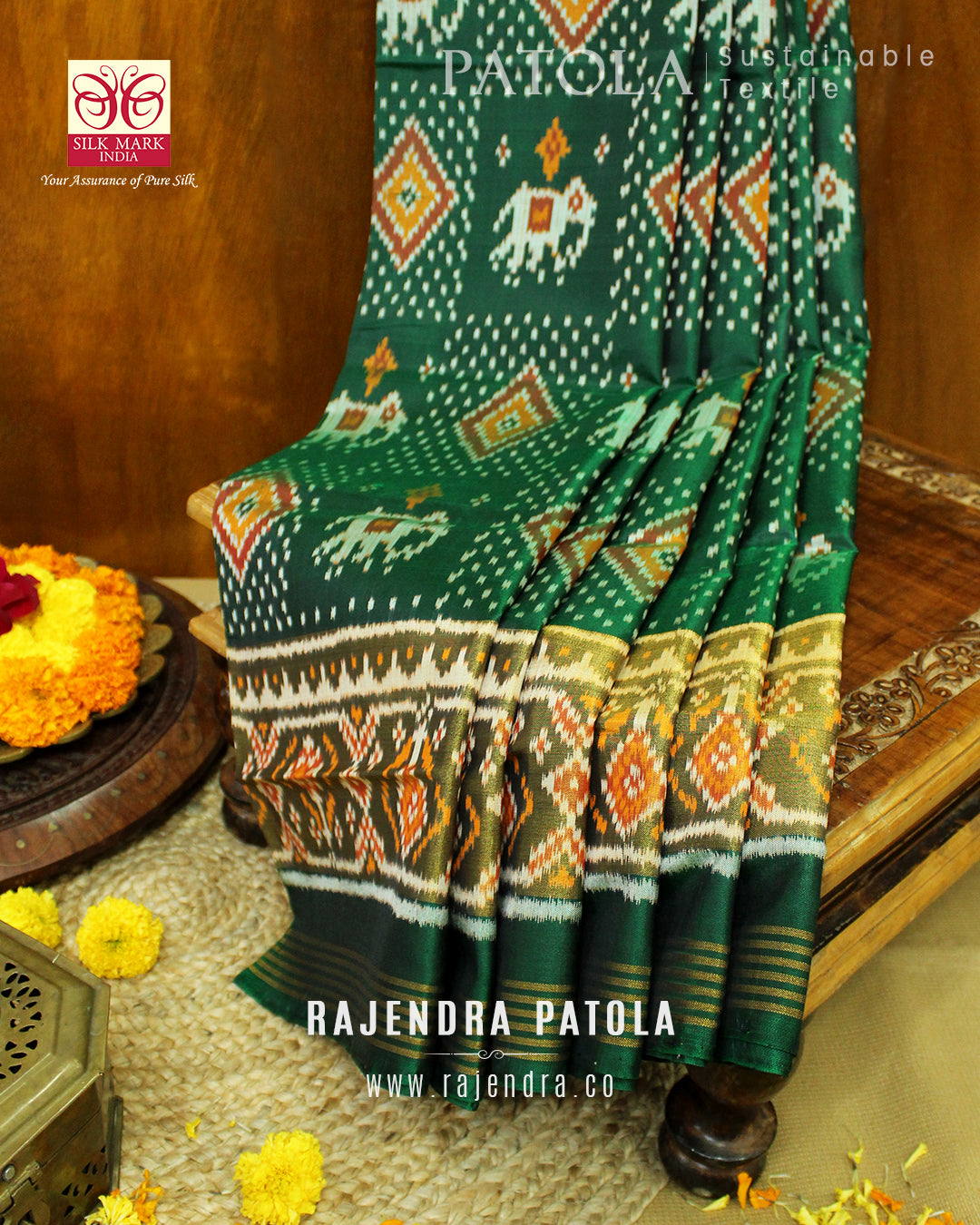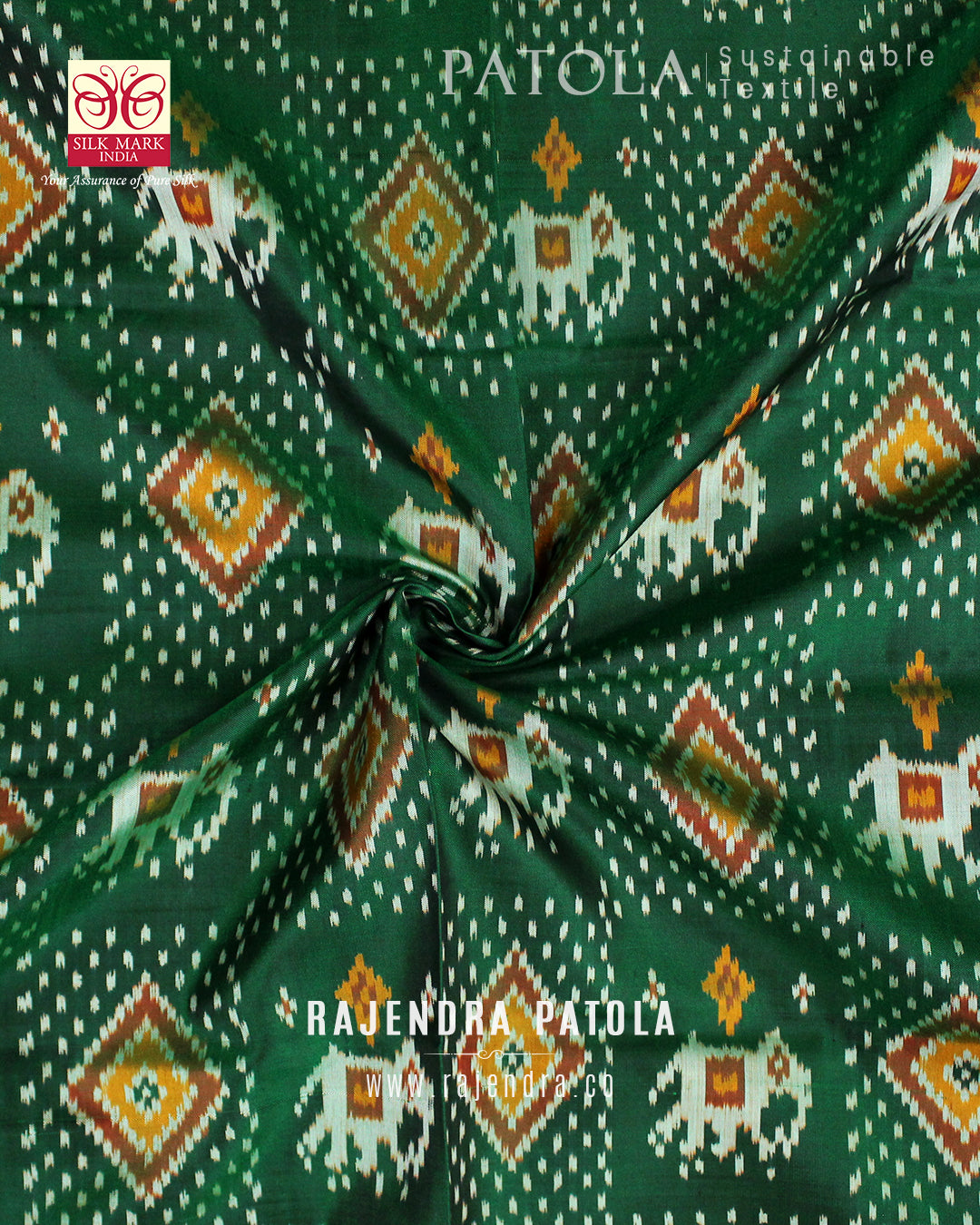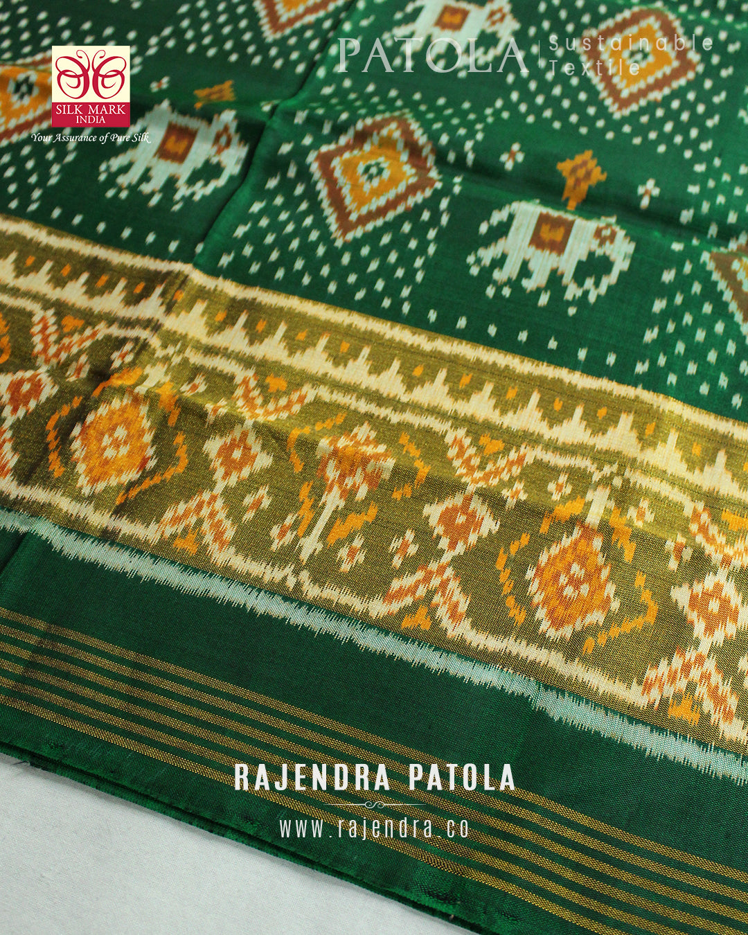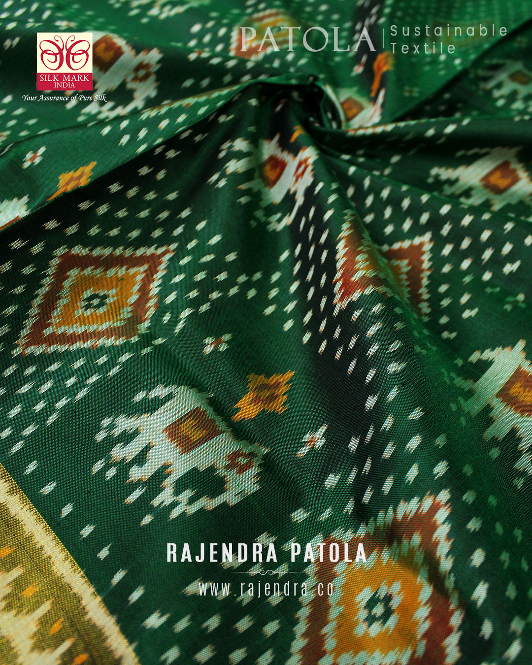 We are govt. approved silk mark certified store for heirloom rajkot patola saree. Authentic silk mark tag with all purchase and secure payment options. Whenever you buy silk make sure it has a silk mark label. The only symbol of purity of silk: the silk mark label. Rajendra Patola assures 100% Silk with Silk mark label.