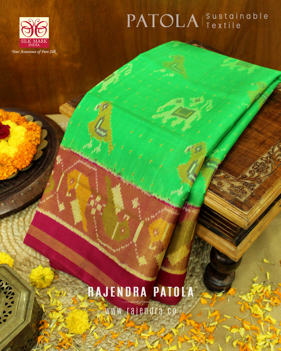 We are govt. approved silk mark certified store for heirloom rajkot patola saree. Authentic silk mark tag with all purchase and secure payment options. Whenever you buy silk make sure it has a silk mark label. The only symbol of purity of silk: the silk mark label. Rajendra Patola assures 100% Silk with Silk mark label.