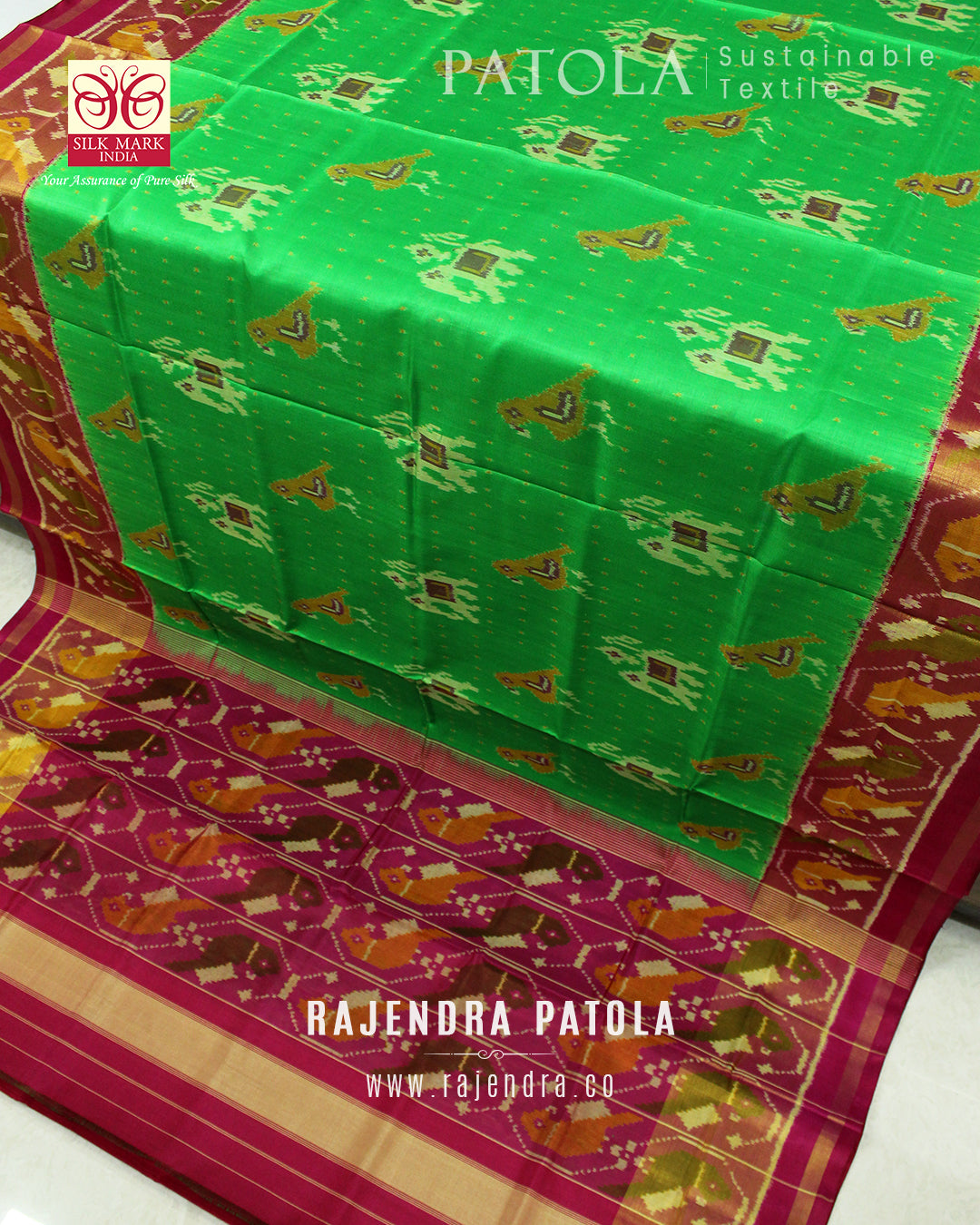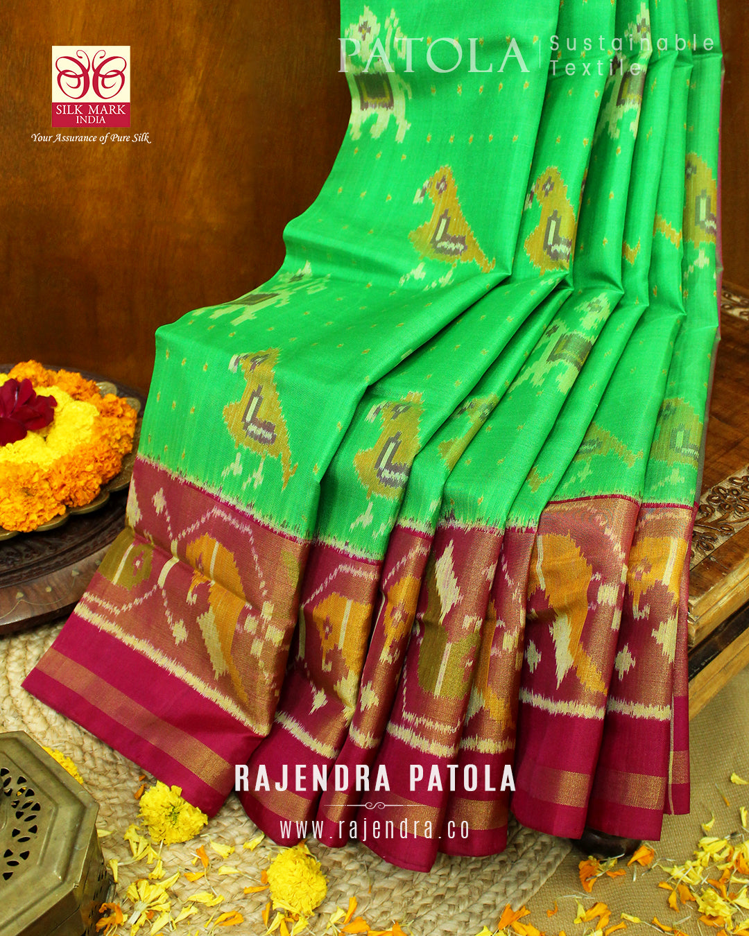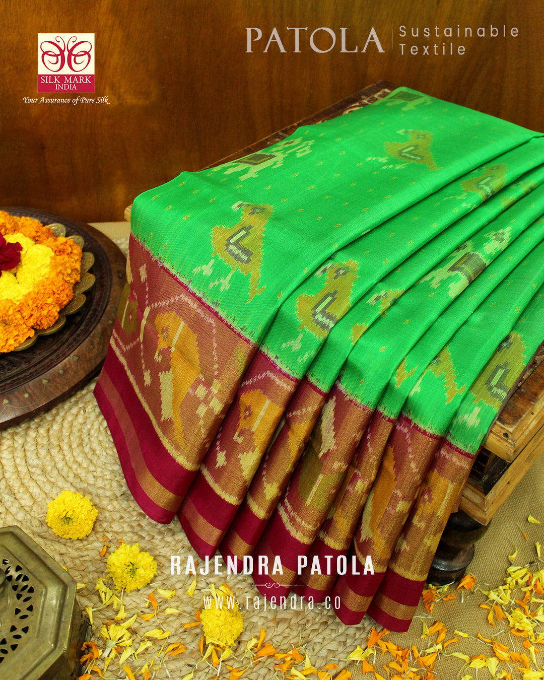 Traditional Hathi Popat Bandhani Bhat Single Ikat Rajkot Patola Saree