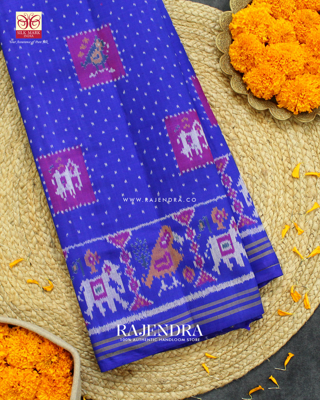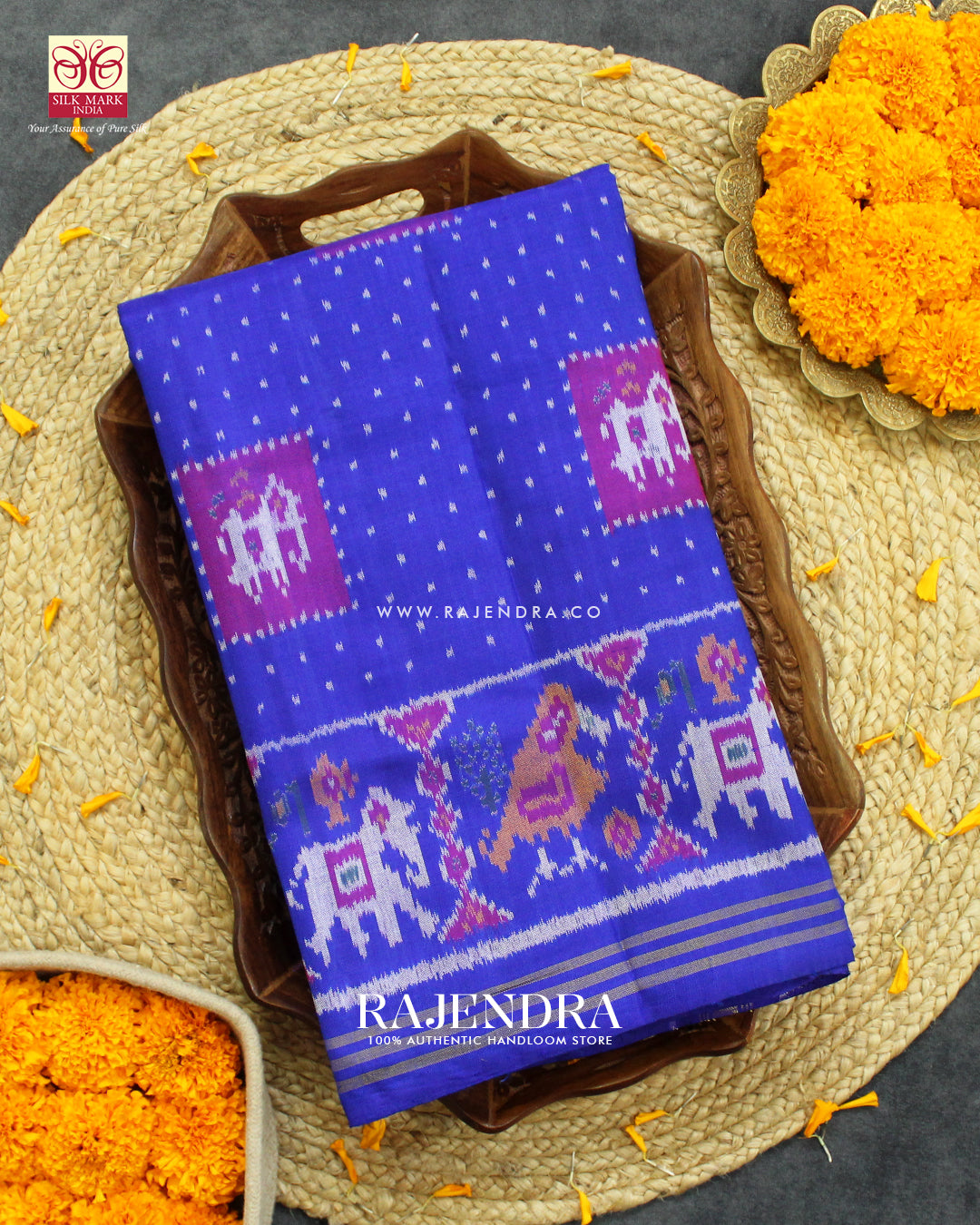Traditional Hathi Popat Blue Ikat Rajkot Patola Saree