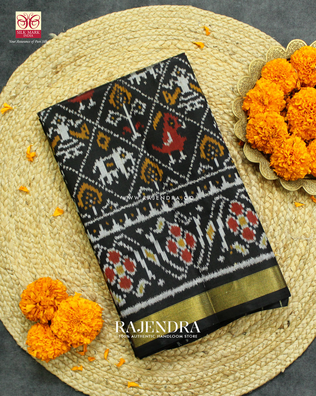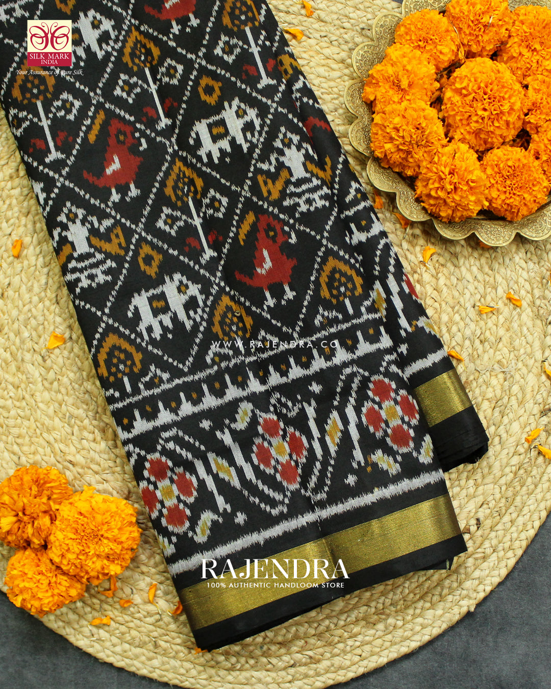 Traditional Hathi Popat Design Black Rajkot Patola Saree