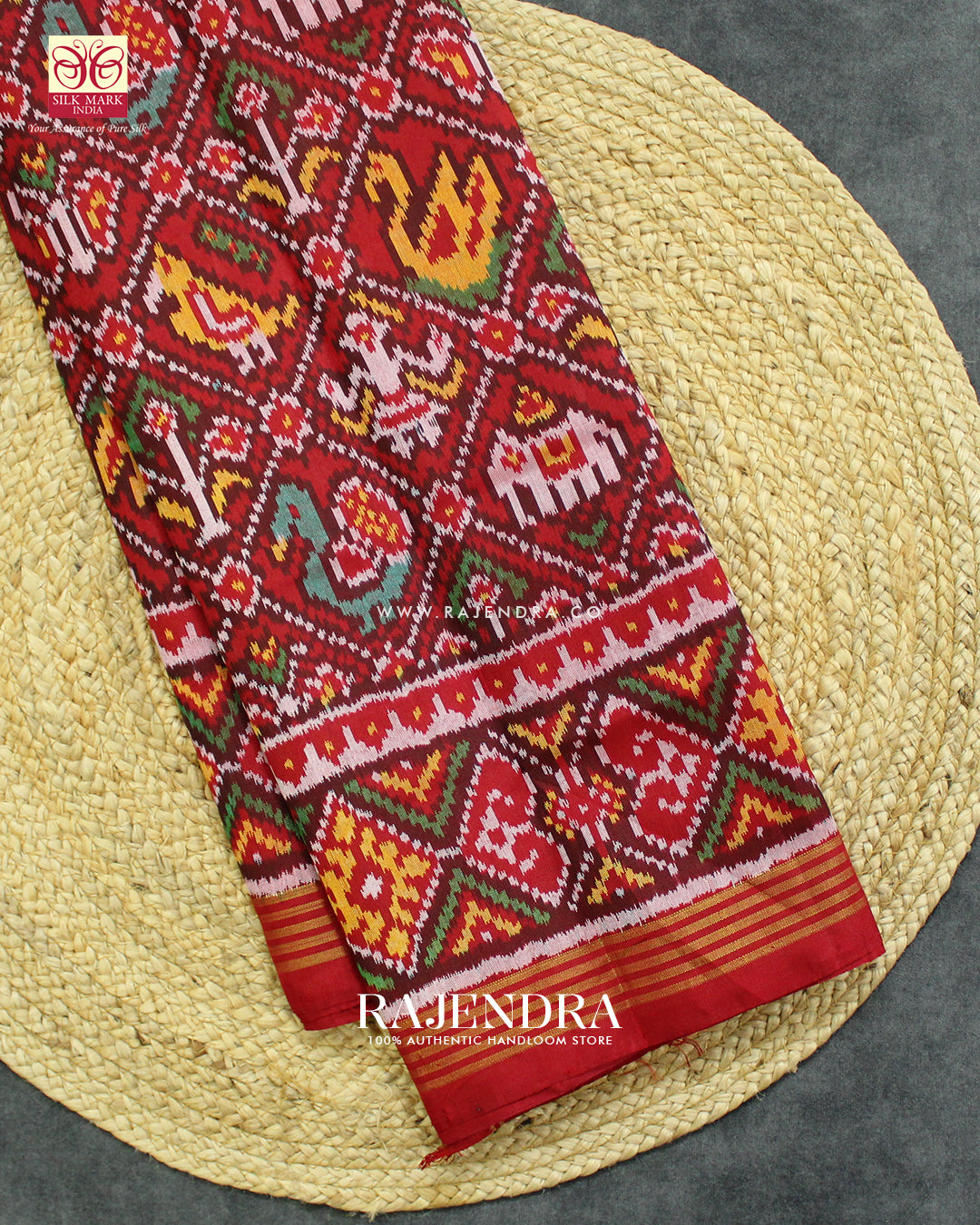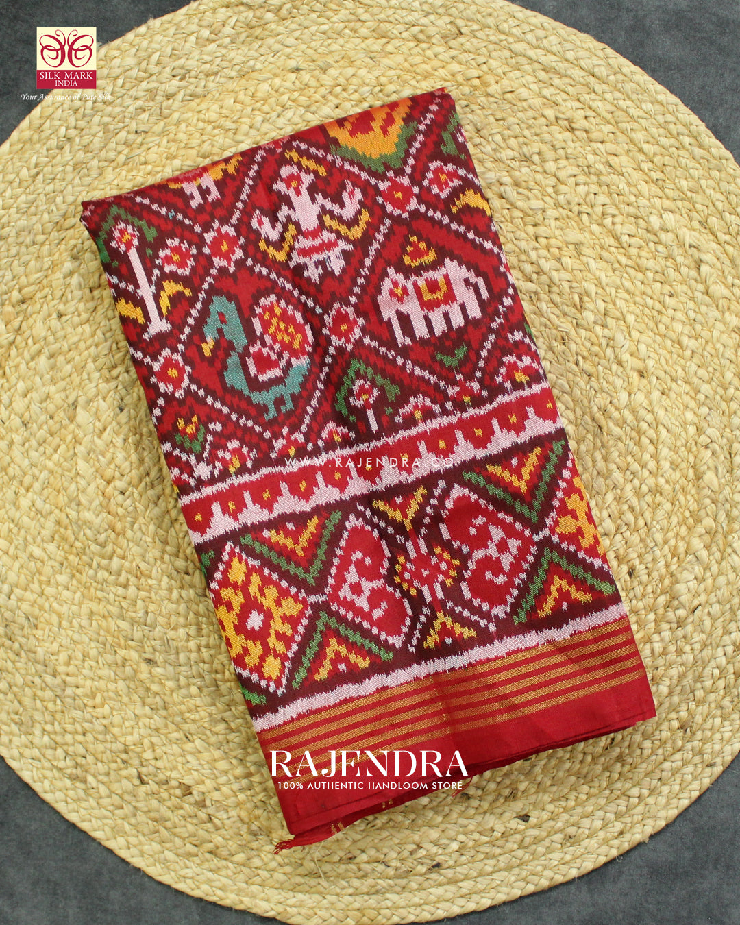 Traditional Hathi Popat Design Red Ikat Rajkot Patola Saree