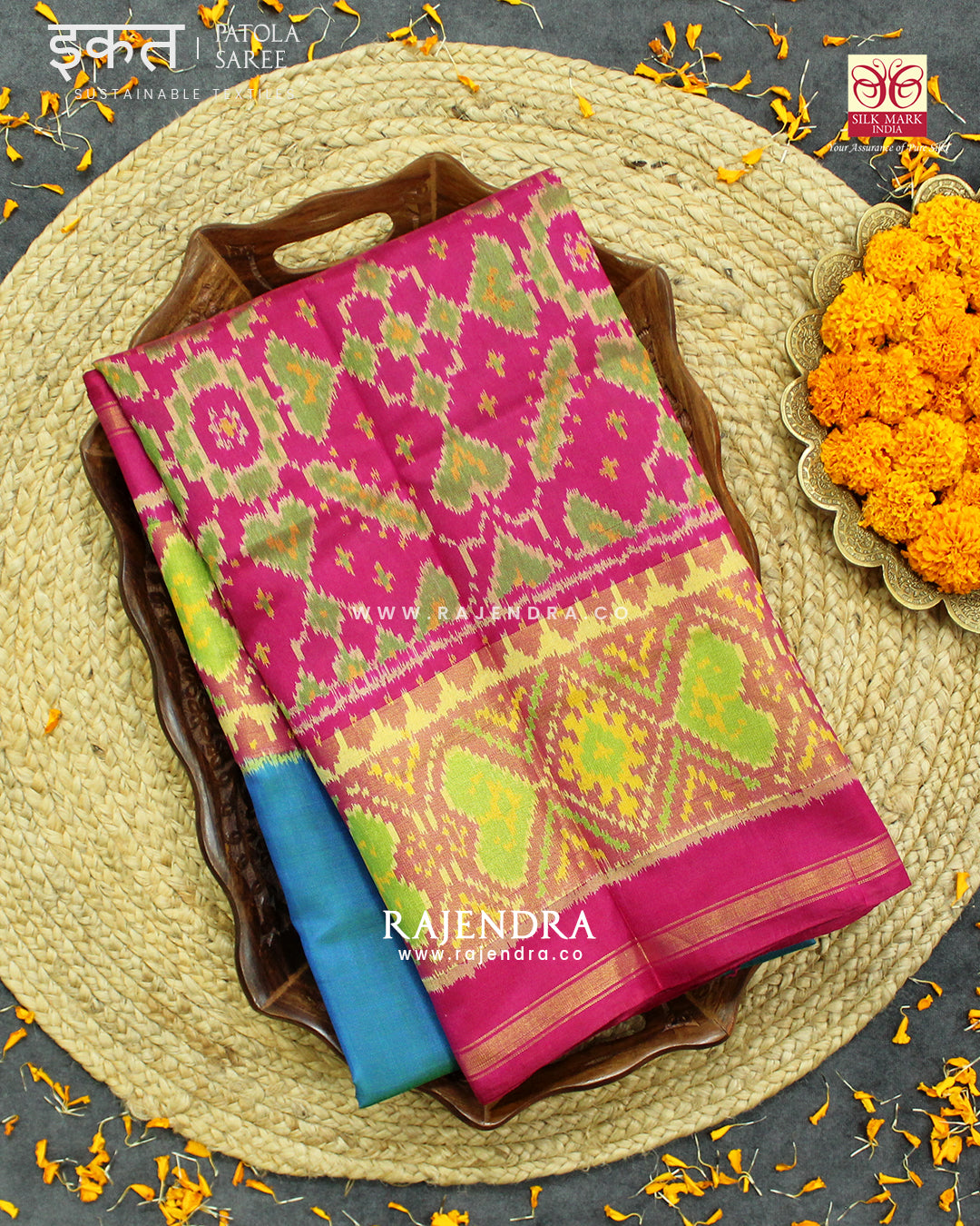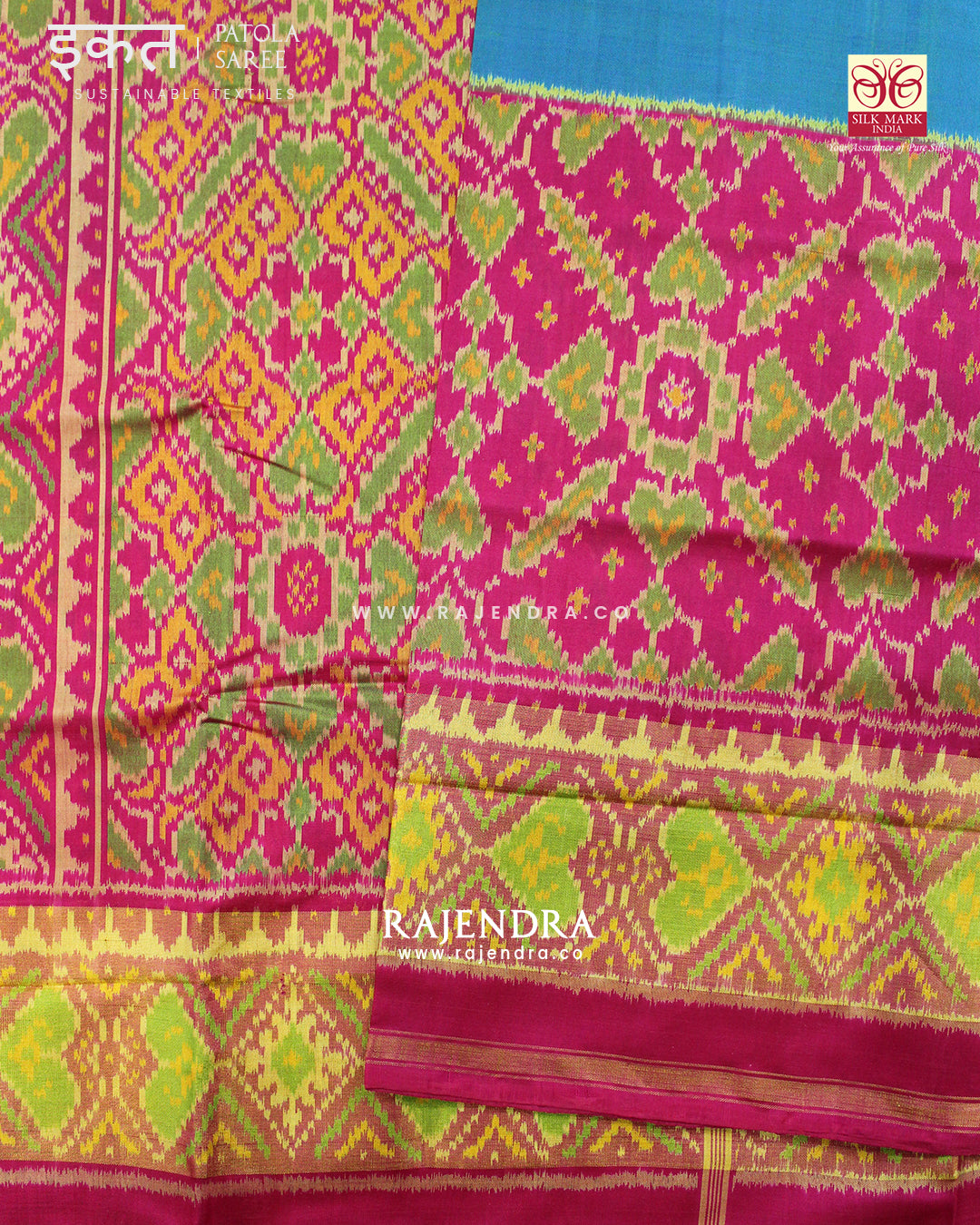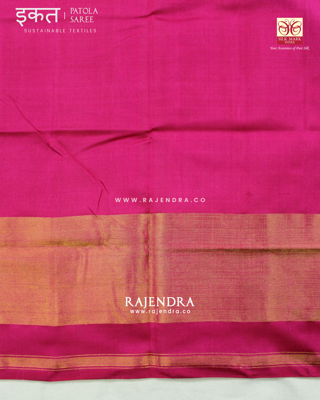 We are govt. approved silk mark certified store for heirloom rajkot patola saree. Authentic silk mark tag with all purchase and secure payment options. Whenever you buy silk make sure it has a silk mark label. The only symbol of purity of silk: the silk mark label. Rajendra Patola assures 100% Silk with Silk mark label.