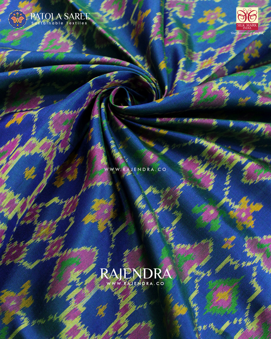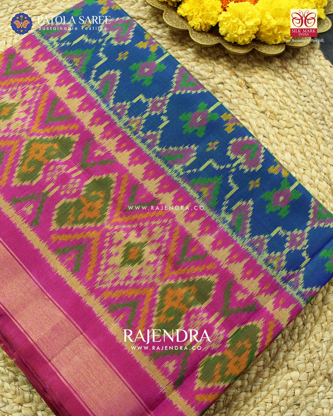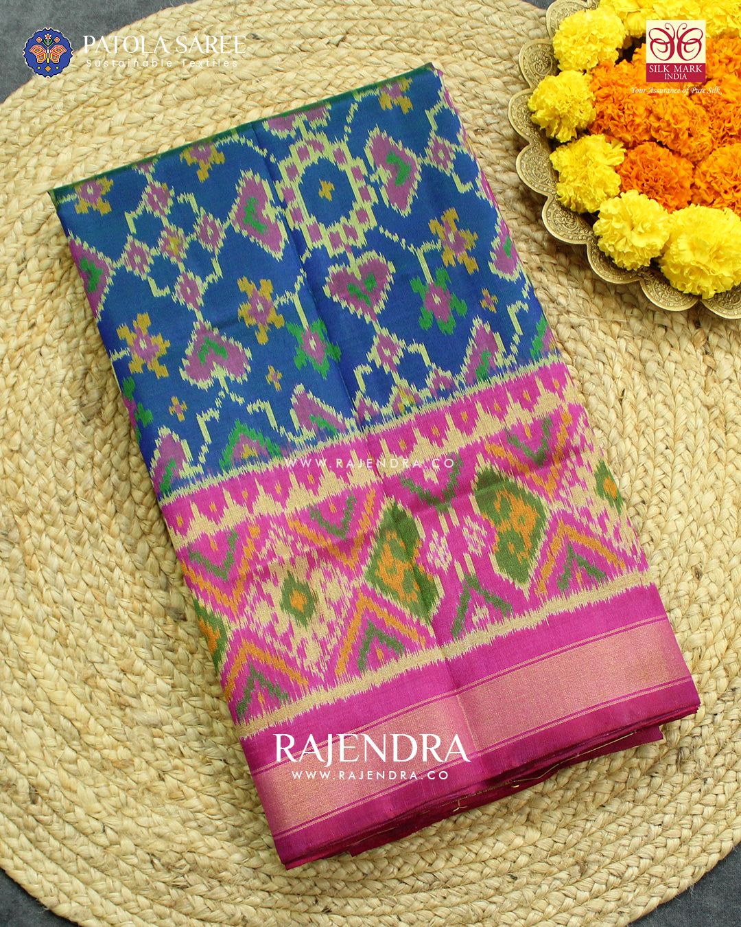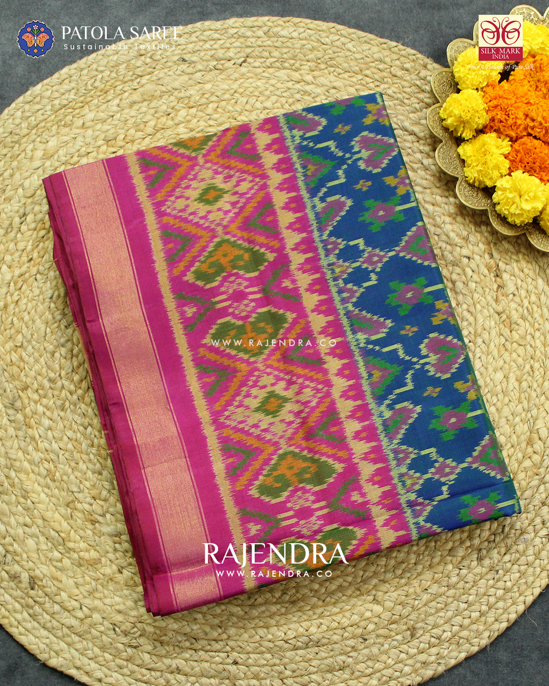 Traditional Manekchowk Pink and Rama Blue Single Ikat Rajkot Patola Saree