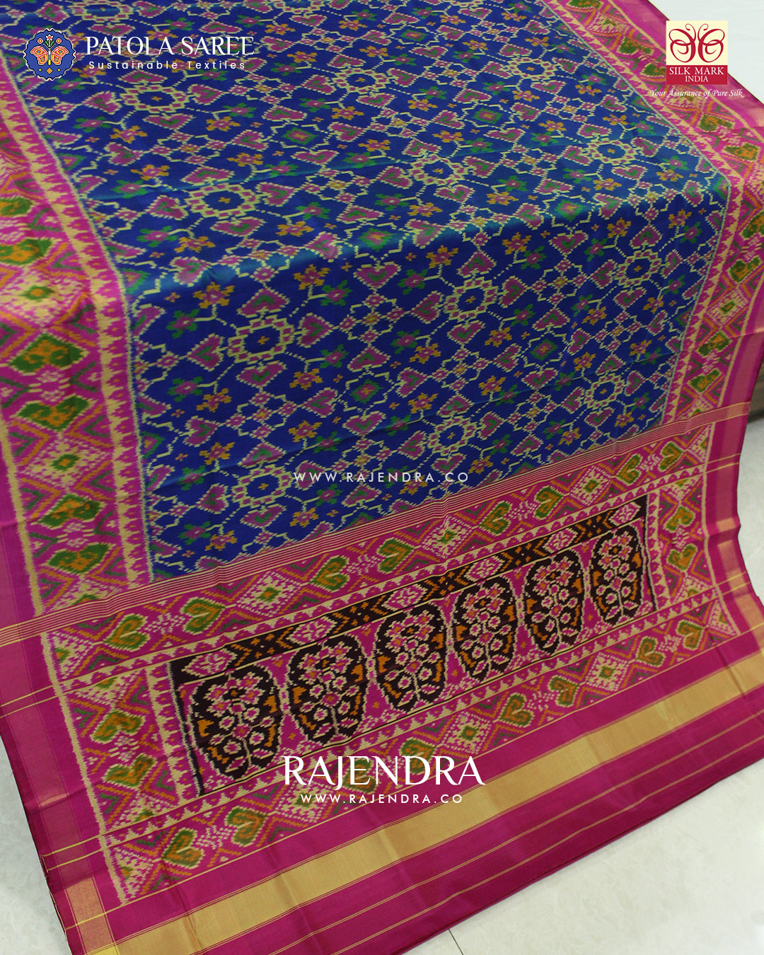 We are govt. approved silk mark certified store for heirloom rajkot patola saree. Authentic silk mark tag with all purchase and secure payment options. Whenever you buy silk make sure it has a silk mark label. The only symbol of purity of silk: the silk mark label. Rajendra Patola assures 100% Silk with Silk mark label.