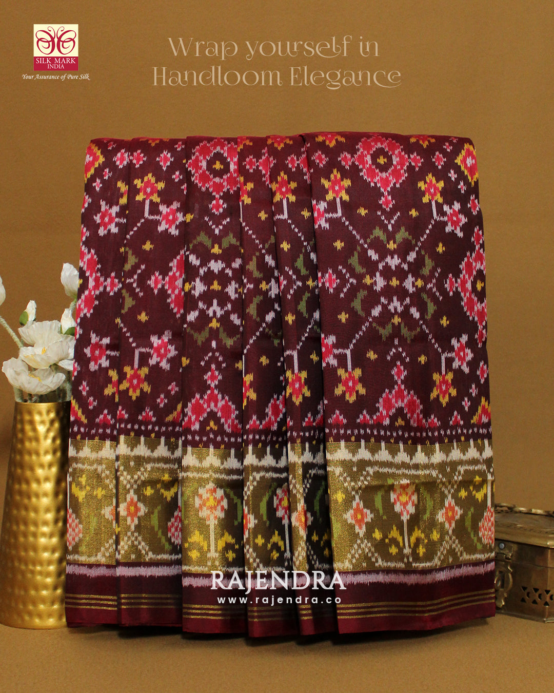 Traditional Navratna Bhat Maroon Single Ikat Rajkot Patola Saree
