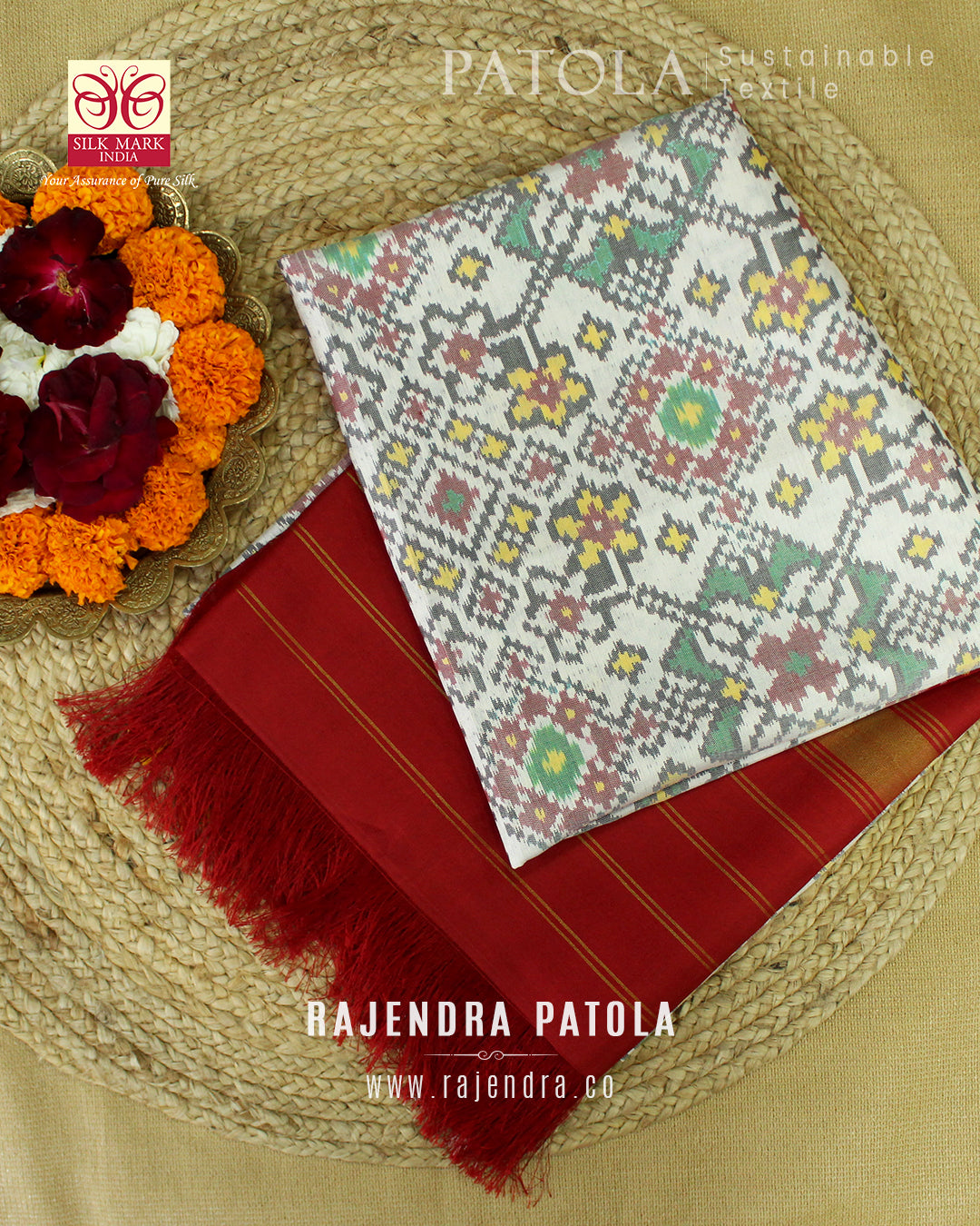 We are govt. approved silk mark certified store for heirloom rajkot patola saree. Authentic silk mark tag with all purchase and secure payment options. Whenever you buy silk make sure it has a silk mark label. The only symbol of purity of silk: the silk mark label. Rajendra Patola assures 100% Silk with Silk mark label.