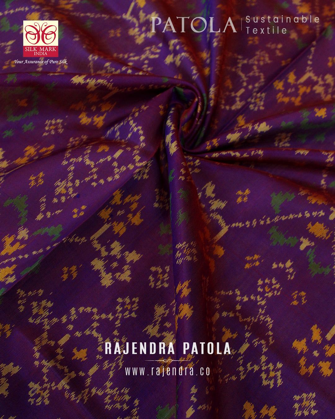 We are govt. approved silk mark certified store for heirloom rajkot patola saree. Authentic silk mark tag with all purchase and secure payment options. Whenever you buy silk make sure it has a silk mark label. The only symbol of purity of silk: the silk mark label. Rajendra Patola assures 100% Silk with Silk mark label.
