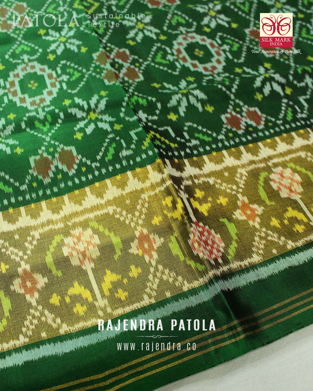 We are govt. approved silk mark certified store for heirloom rajkot patola saree. Authentic silk mark tag with all purchase and secure payment options. Whenever you buy silk make sure it has a silk mark label. The only symbol of purity of silk: the silk mark label. Rajendra Patola assures 100% Silk with Silk mark label.