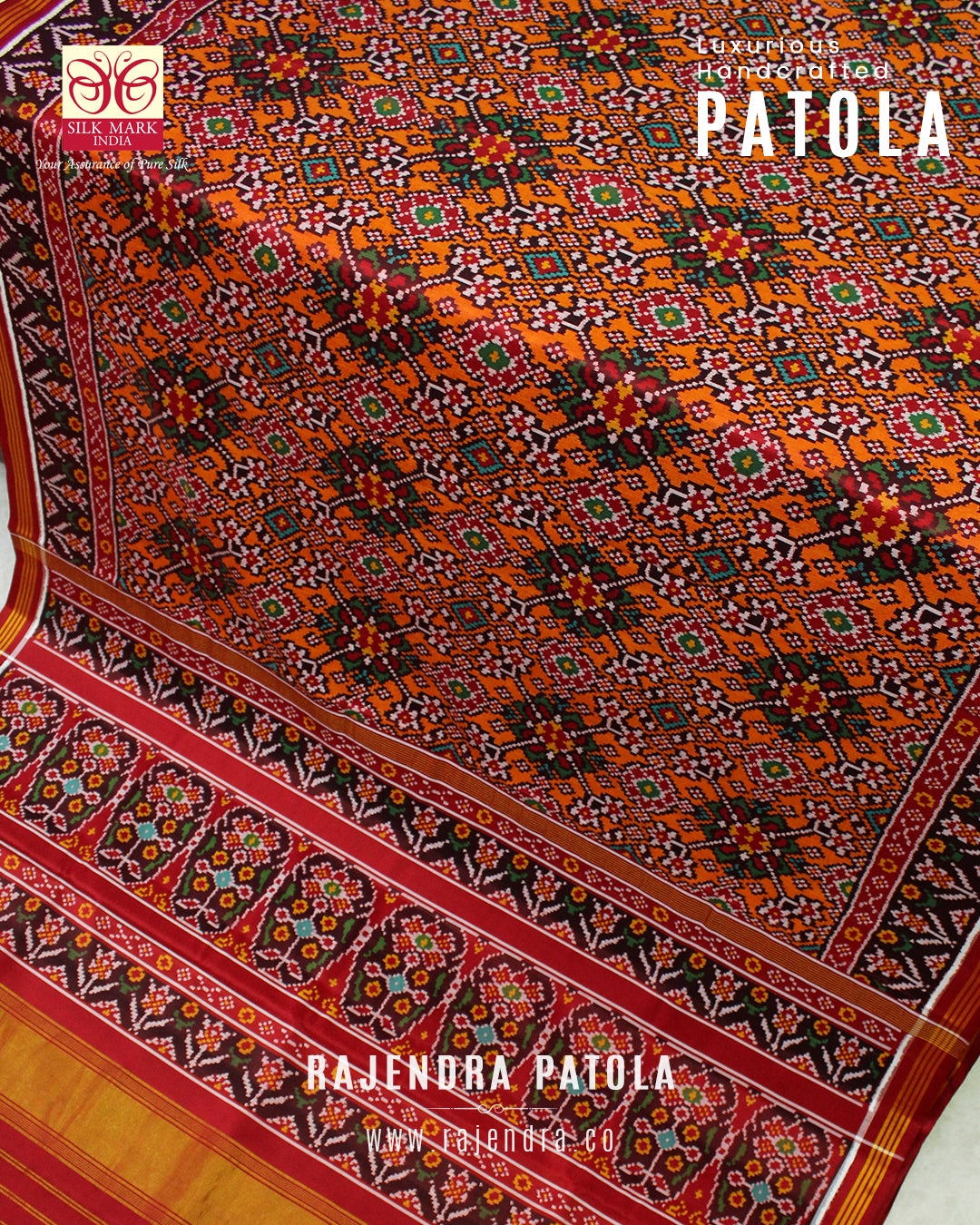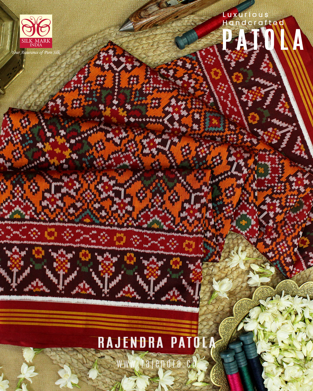 We are govt. approved silk mark certified store for heirloom rajkot patola saree. Authentic silk mark tag with all purchase and secure payment options. Whenever you buy silk make sure it has a silk mark label. The only symbol of purity of silk: the silk mark label. Rajendra Patola assures 100% Silk with Silk mark label.