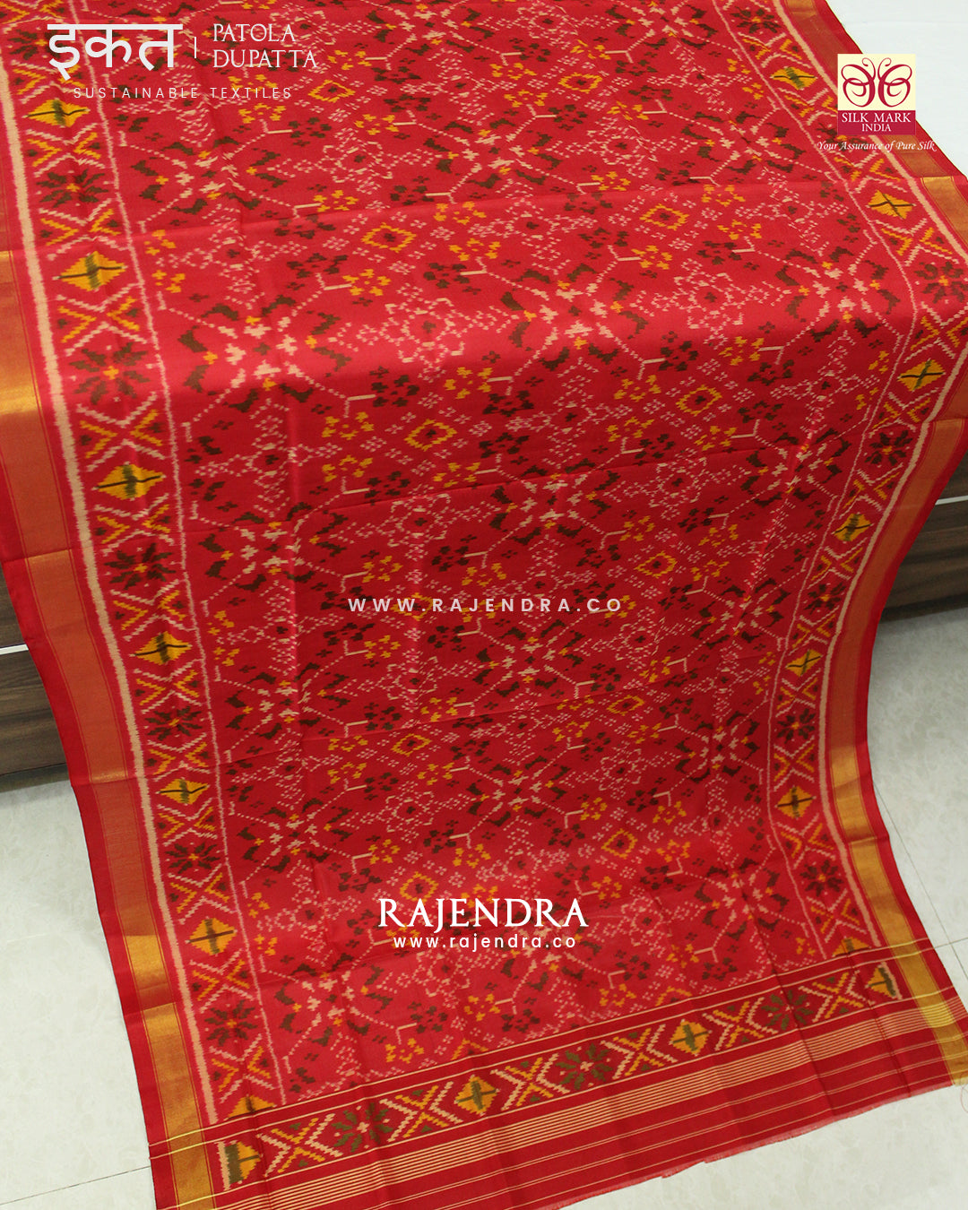 Traditional Navratna Design Single Ikat Rajkot Patola Dupatta