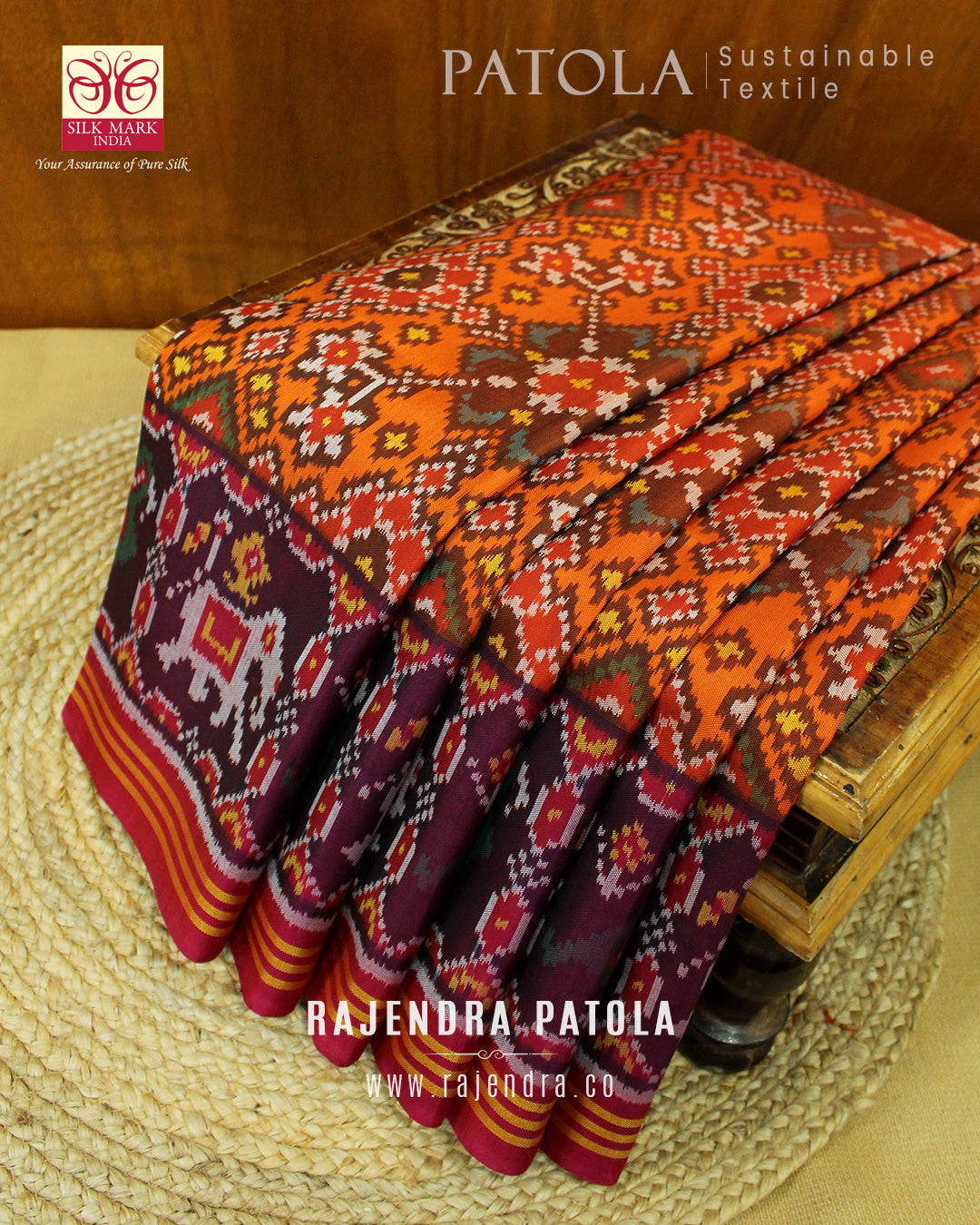 We are govt. approved silk mark certified store for heirloom rajkot patola saree. Authentic silk mark tag with all purchase and secure payment options. Whenever you buy silk make sure it has a silk mark label. The only symbol of purity of silk: the silk mark label. Rajendra Patola assures 100% Silk with Silk mark label.