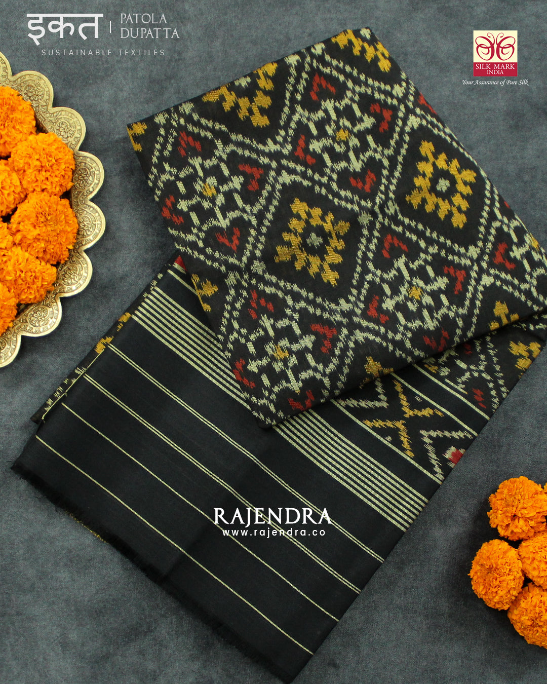 Traditional Panchanda Bhat Black Single Ikat Rajkot Patola Dupatta