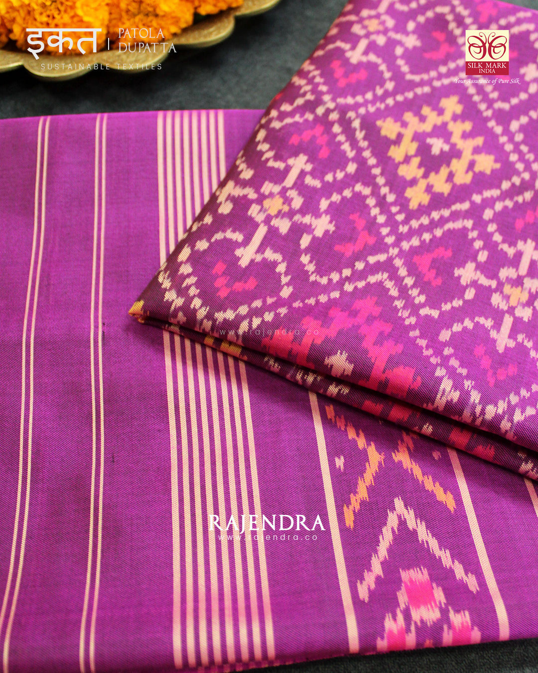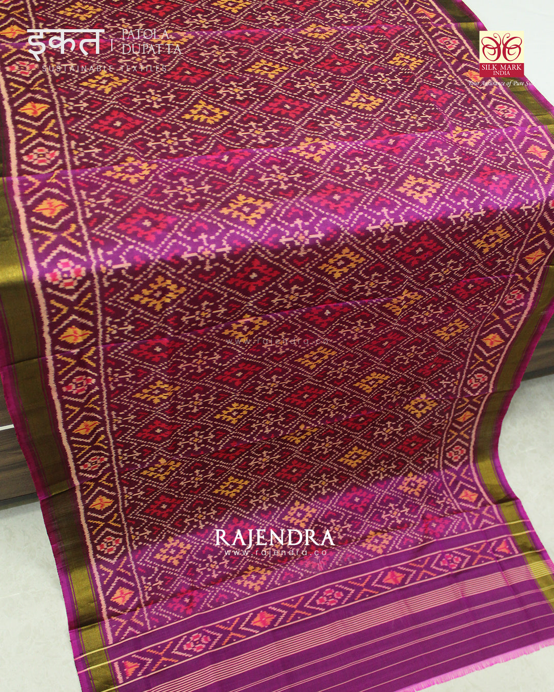 Traditional Panchanda Bhat Magenta Single Ikat Rajkot Patola Dupatta