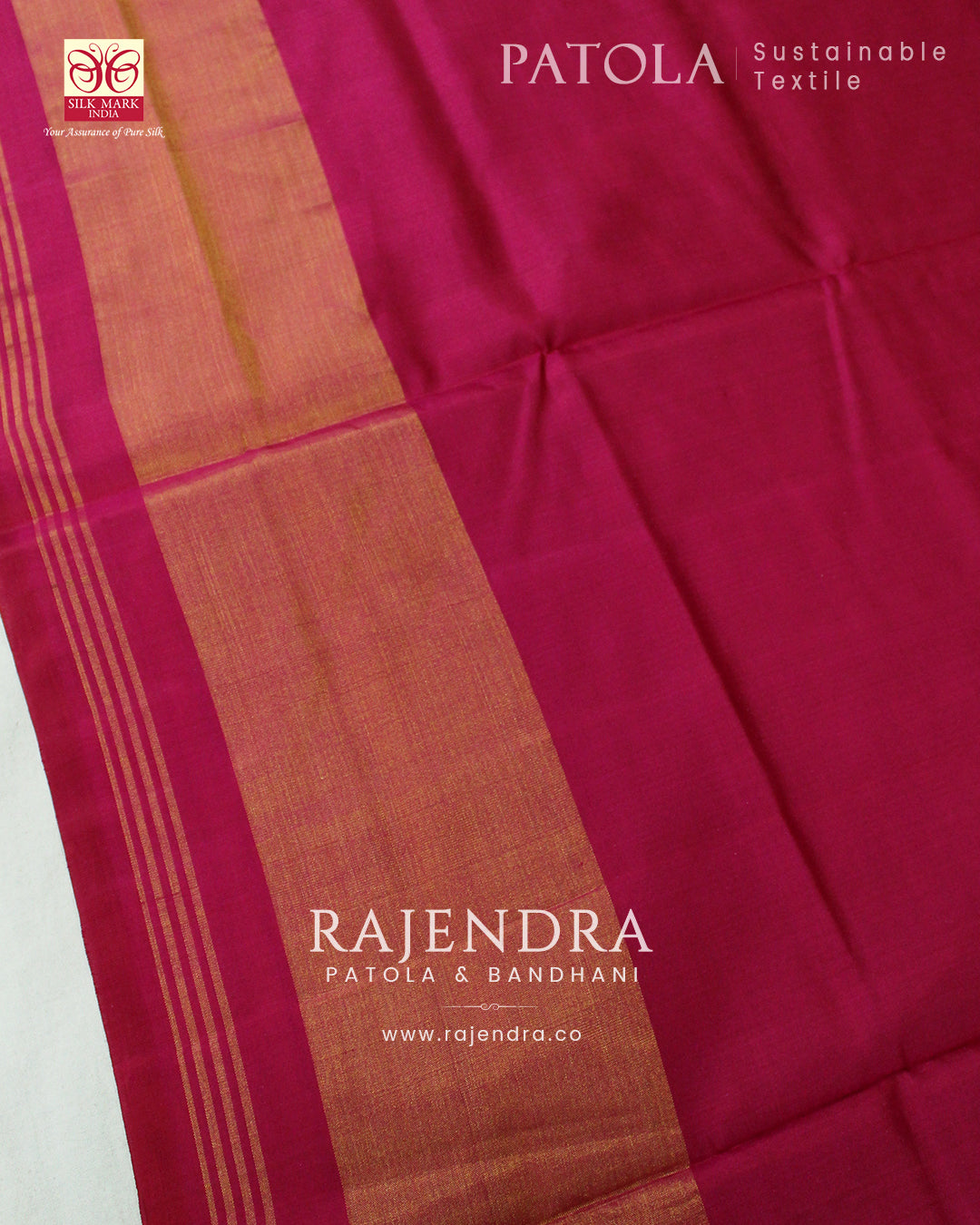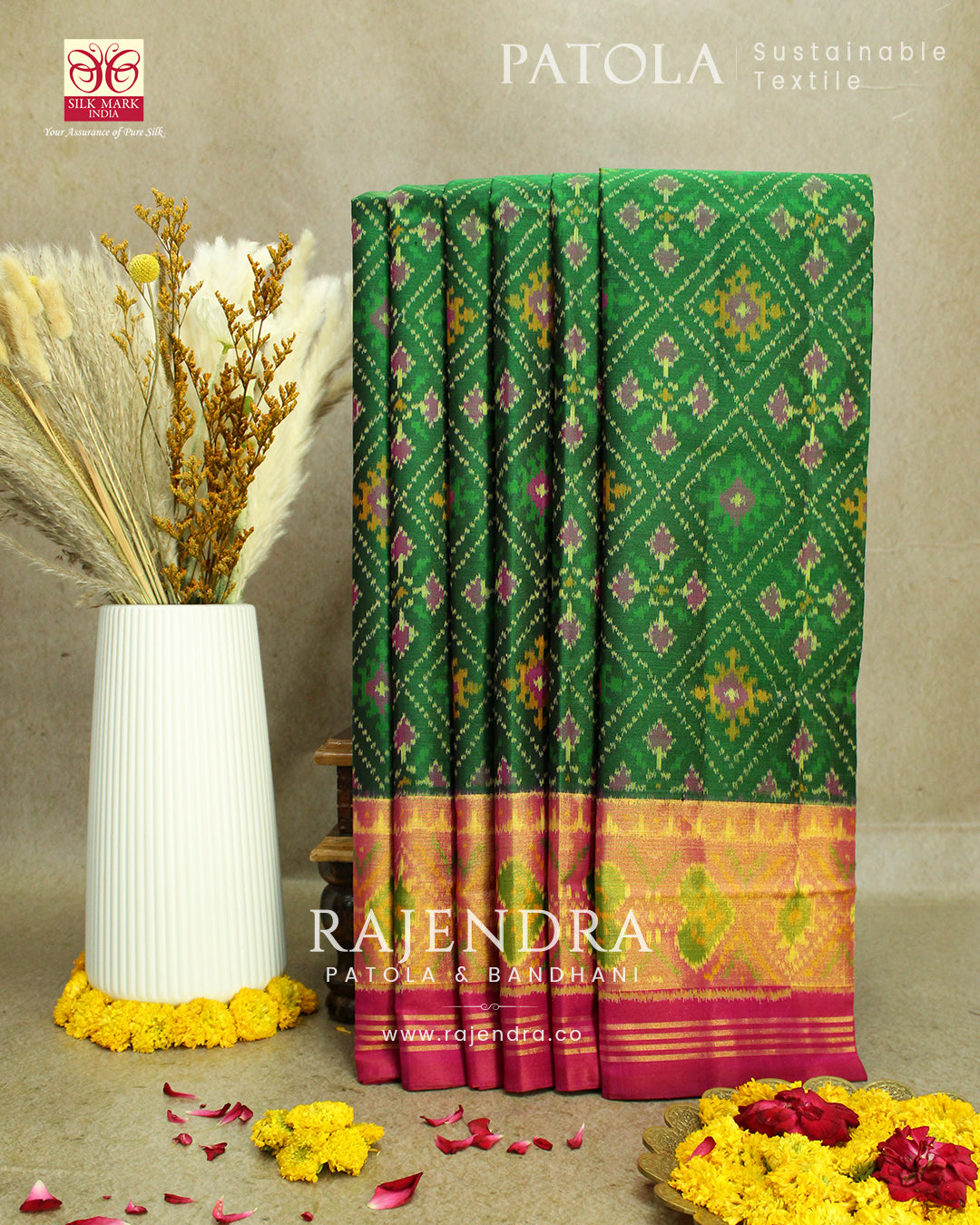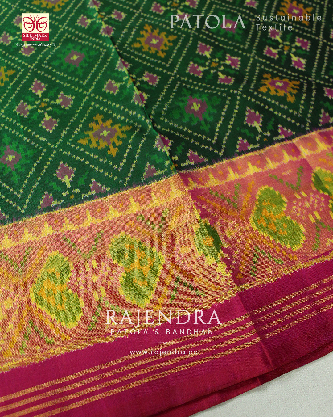 Traditional Panchanda Bhat Pink and Green Single Ikat Rajkot Patola Saree